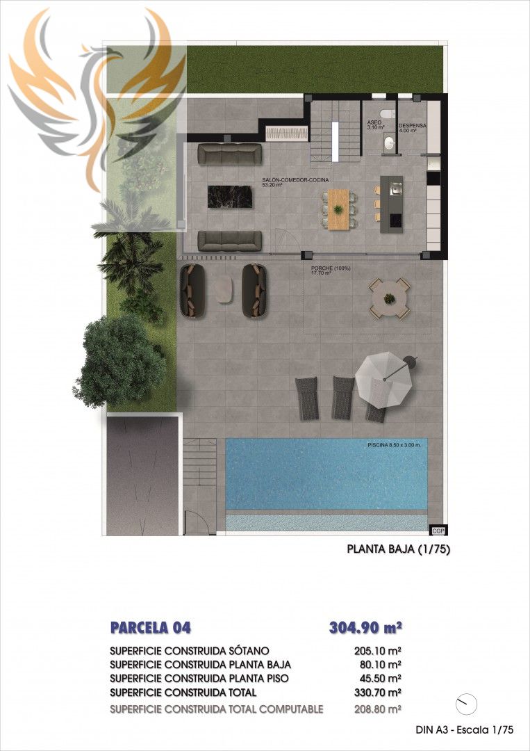 Villa 04. Con 4 Dormitorios, 3 Baños Completos y 1 Aseo. Parcela de 304,90 m2. Superficie Construida de 330,70 m2. Superficie Util de 208,80 m2. SHOW HOUSE