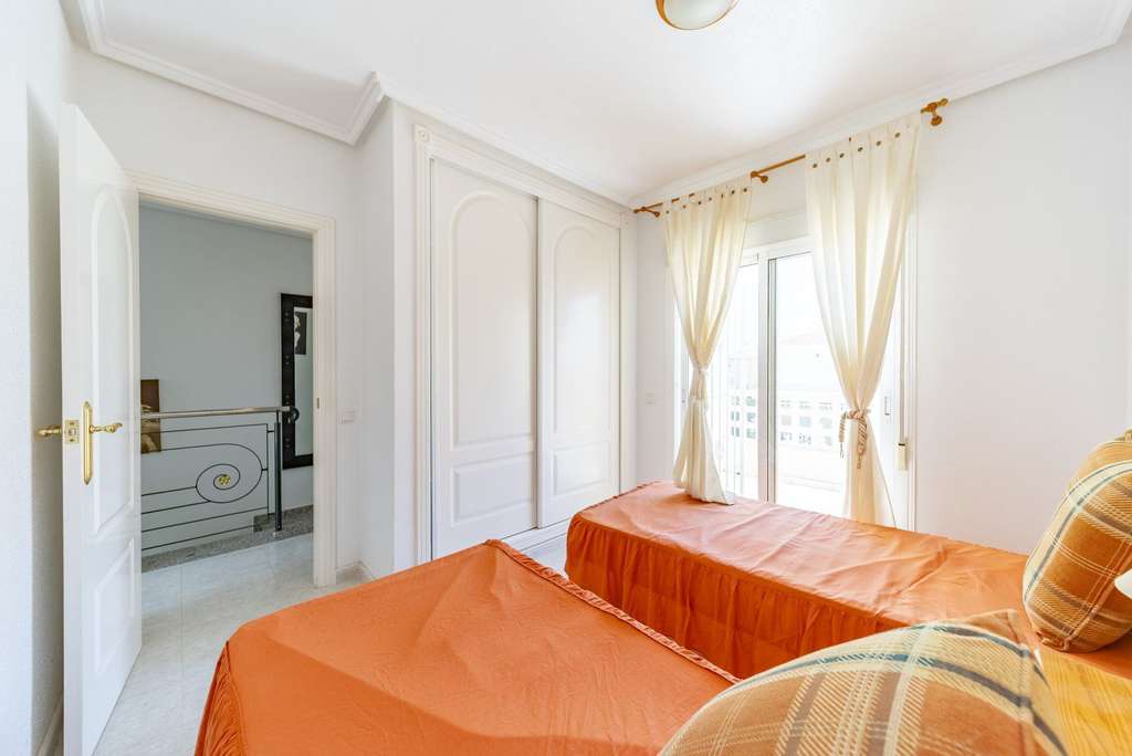Ubicado en una zona residencial tranquila, este adosado ofrece 101 m² construidos y un jardín de 50 m². Distribuido en dos plantas, cuenta con 3 dormitorios (uno en planta baja), 2 baños, cocina independiente con salida a terraza trasera, y varias terrazas con vistas abiertas, incluida una con vista a la piscina. Orientación este-oeste, amueblado y equipado, con aire acondicionado en salón y dormitorio principal. Incluye trastero, piscina y parking comunitario.