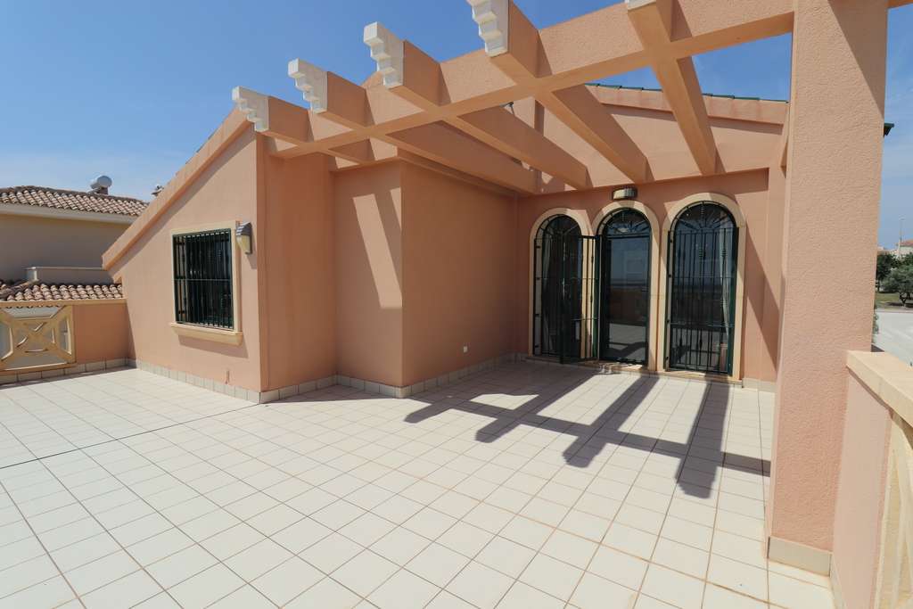En la entrada, se trata de una villa de 4 dormitorios distribuida en 2 plantas, a la que se accede desde una gran terraza delantera. En la planta baja tenemos una sala de estar moderna y luminosa, aquí la cocina, el comedor y la sala de estar grandes y modernos ofrecen mucho espacio para organizar un diseño de estas áreas que se adapte a sus necesidades. Aquí también tenemos el dormitorio principal con baño en suite y 2 dormitorios dobles con armarios empotrados y un baño familiar, también un espacio adicional de almacenamiento separado, y fuera de la cocina un lavadero o lavadero adicional. En el segundo piso hay un cuarto dormitorio más, y este tiene doble acceso a las terrazas / solarium de la propiedad mirando hacia adelante hacia los lagos de sal y en la parte trasera a través de Quesada. En este piso también hay una habitación adicional, actualmente utilizada como oficina pero igualmente podría ser un 5to dormitorio o cualquier espacio que usted prefiera. #13; #13;