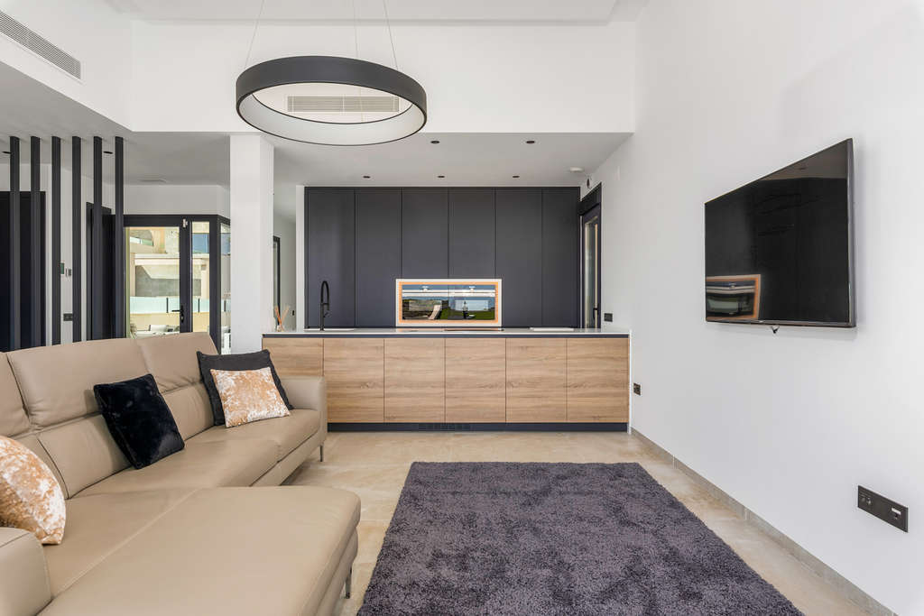 Hermosa villa de lujo con una superficie habitable total de 333 m2 dividida en dos niveles. Consta de un total de 5 dormitorios dobles, todos ellos con baños en suite, un baño adicional y un aseo de invitados. La planta principal consta de dos dormitorios con baños en suite, un aseo de invitados y una preciosa cocina abierta, salón y comedor. En el salón hay puertas correderas de cristal que se abren por completo para unir el interior con el exterior.