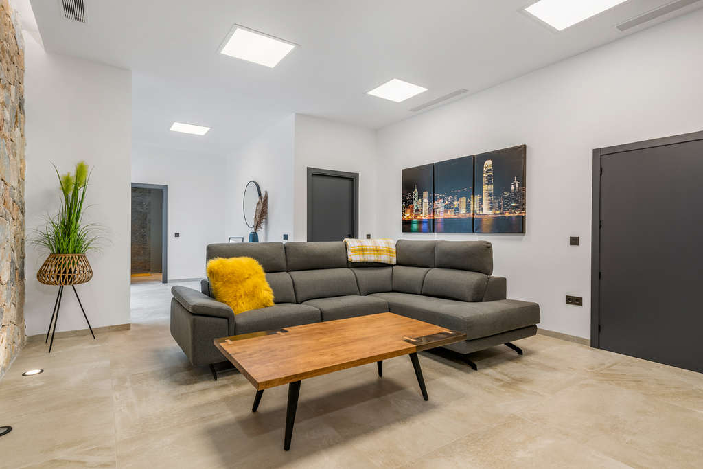 ExteriorLa villa se encuentra en una parcela de esquina de 462 m2. El área de la piscina está orientada al este, y tiene impresionantes vistas de los alrededores y del mar. Alrededor de la piscina hay una bonita zona con espacio para varias zonas de estar al aire libre y tumbonas. Desde el área de la piscina tiene escaleras que te lleva al solarium. Aquí tienes una parte de baldosas y otra de césped artificial, ambas con mucho espacio para el ocio al aire libre y con unas vistas impresionantes.