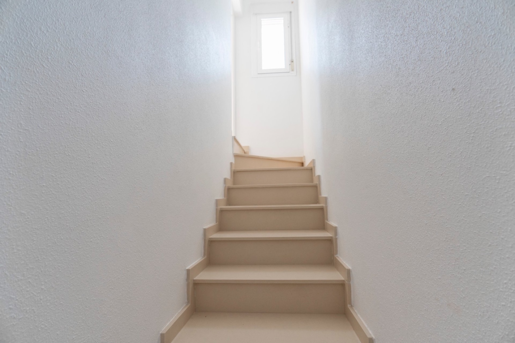 Dos baños: ambos baños cuentan con azulejos modernos y duchas a ras de suelo, incluyendo uno convenientemente situado en la planta baja para invitados.