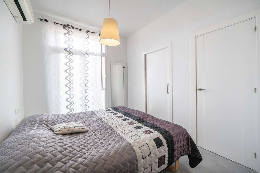 La vivienda cuenta con 78 m² construidos distribuidos en 2 amplios dormitorios y 2 baños, uno de ellos en suite con ducha. La cocina americana, equipada con una elegante isla central, se integra perfectamente con el salón, ofreciendo un espacio abierto, luminoso y funcional. Además, dispone de aire acondicionado en cada habitación y en el salón, garantizando el confort durante todo el año.