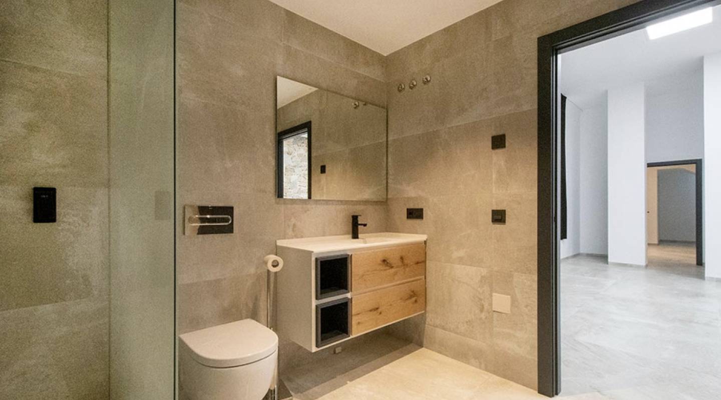 En el sótano de la villa se encuentran dos dormitorios adicionales, también con armarios empotrados y baño en suite. En esta planta también se encuentra una gran sala multifuncional con sauna, un baño y un patio interior que ofrece un área exterior adicional. El sótano también alberga el garaje, con espacio suficiente para almacenamiento y aparcamiento.