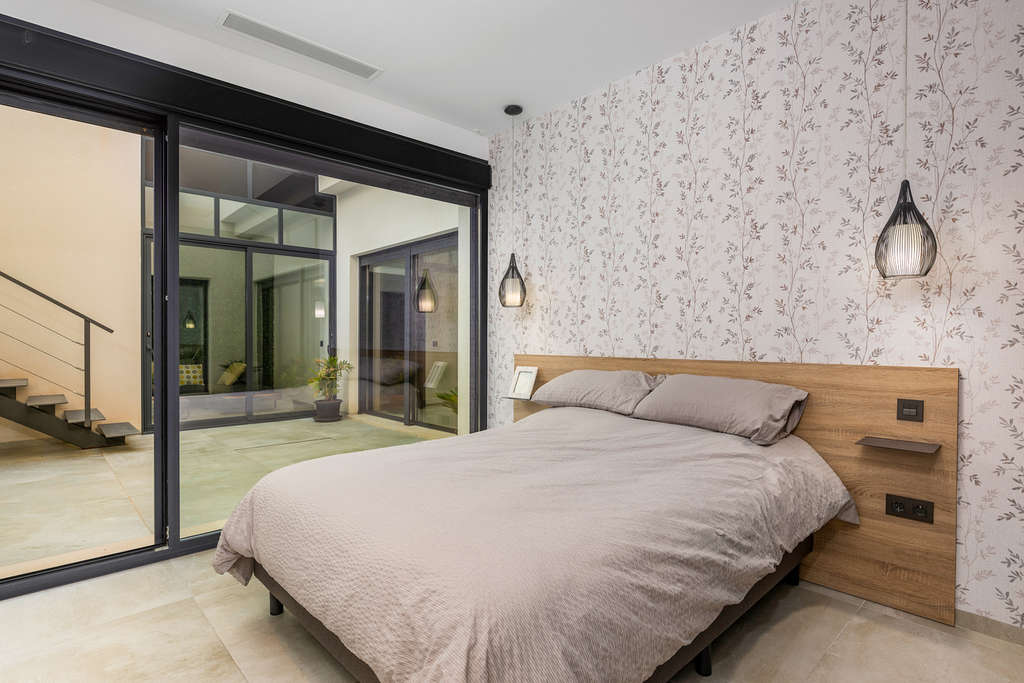 Hermosa villa de lujo con una superficie habitable total de 333 m2 dividida en dos niveles. Consta de un total de 5 dormitorios dobles, todos ellos con baños en suite, un baño adicional y un aseo de invitados. La planta principal consta de dos dormitorios con baños en suite, un aseo de invitados y una preciosa cocina abierta, salón y comedor. En el salón hay puertas correderas de cristal que se abren por completo para unir el interior con el exterior.