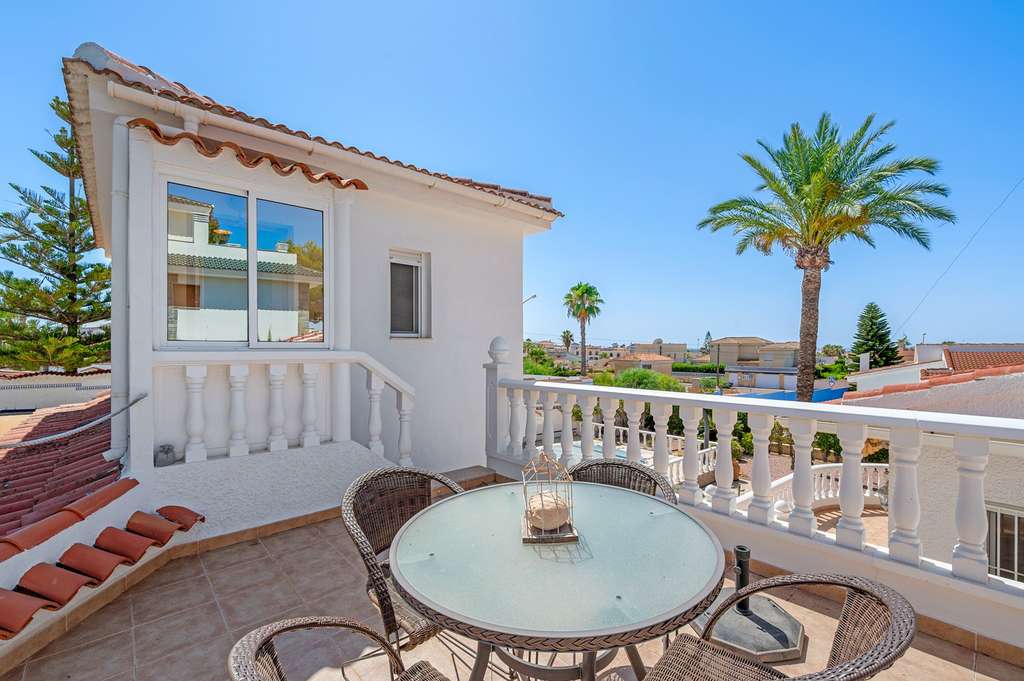 Ubicada en una amplia parcela totalmente vallada, la propiedad cuenta con un jardín bien cuidado que ofrece amplio espacio exterior para disfrutar del sol mediterráneo. La casa tiene vistas a una piscina privada y cuenta con aparcamiento privado seguro, además de garaje. Una gran terraza envolvente en la parte delantera de la villa ofrece vistas elevadas a los jardines y la hace perfecta para relajarse o entretenerse.