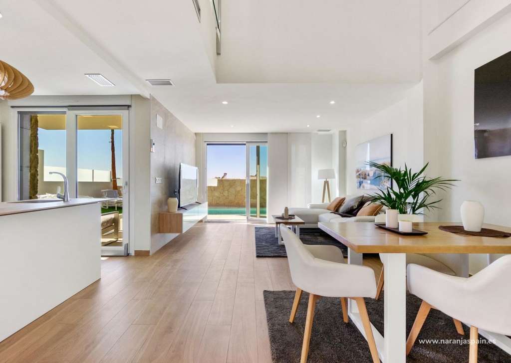 Villas construidas en 2 plantas, con 3 dormitorios y 3 baños, cocina americana con salón, armarios empotrados, terraza, jardín privado con piscina y plaza de aparcamiento.