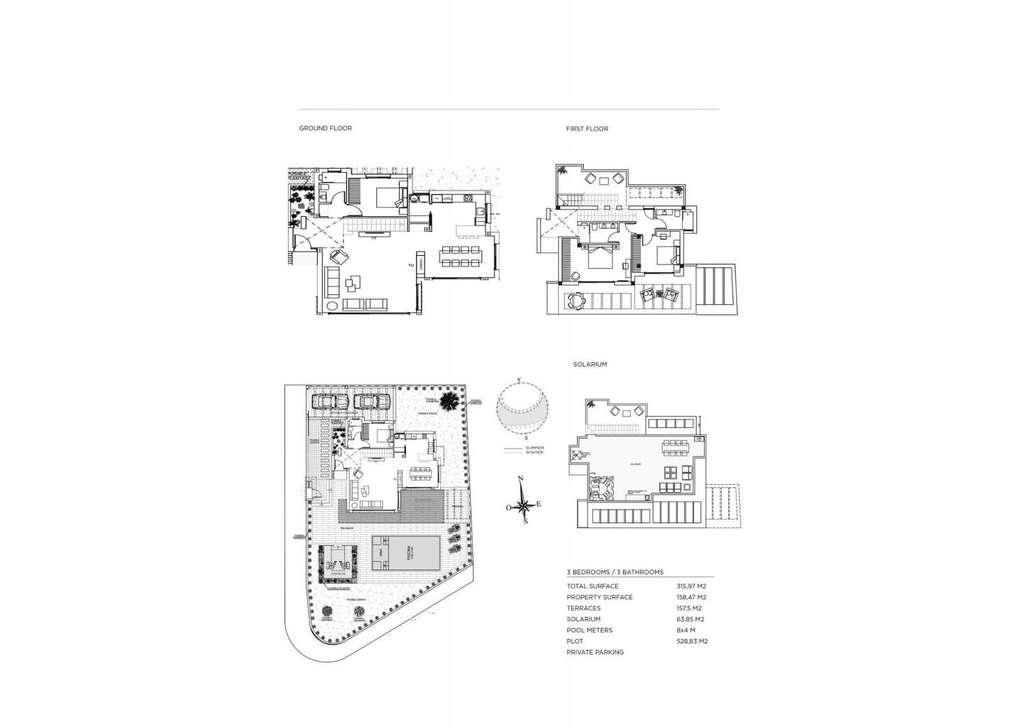 Consta de salón-comedor con cocina abierta, 3 dormitorios y 3 baños, en dos plantas. Además con terraza, solarium, jardín privado con la piscina y plaza de garaje.