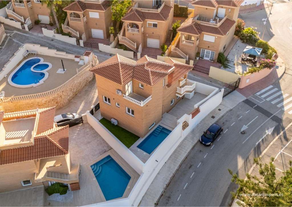 Villa tiene 4 dormitorios, 3 baños, cocina americana, salón-comedor, 3 terrazas, garaje, sala de ocio, patio, piscina privada.