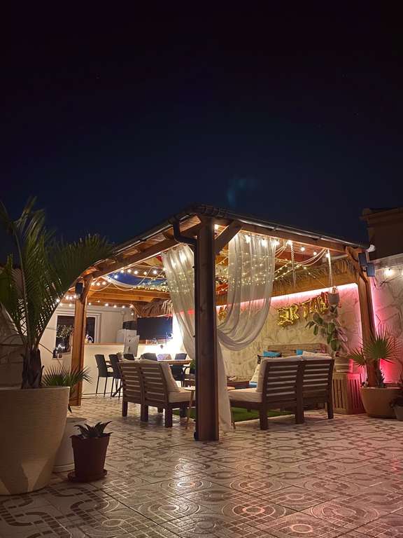 En el exterior, destacan las terrazas soleadas, el bar exterior, la ducha al aire libre y una azotea con vistas panorámicas a los lagos salados. Dispone de dos garajes cerrados con espacio para tres vehículos o una camper.