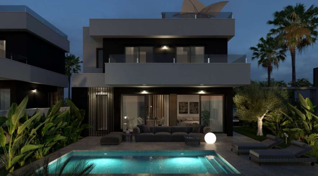 Villas de nueva construcción en Ciudad Quesada, Costa Blanca, EspañaVillas de nueva construcción en un complejo residencial cerca de los campos de golf y lagos de Torrevieja. Las villas de dos niveles tienen 3 dormitorios, 3 baños, salón, cocina y terraza. Tienen piscina privada, solárium y jardines paisajísticos.Ciudad Quesada ofrece una gran variedad de bares y restaurantes, tiendas y supermercados, un hotel spa de lujo, un campo de golf de 18 hoyos con campo de prácticas e incluso un parque acuático. Todo esto a solo 10 minutos de algunas de las mejores playas con bandera azul de la Costa Blanca.Los aeropuertos de Alicante y Murcia se encuentran a 30 minutos en coche (aproximadamente 35 km).