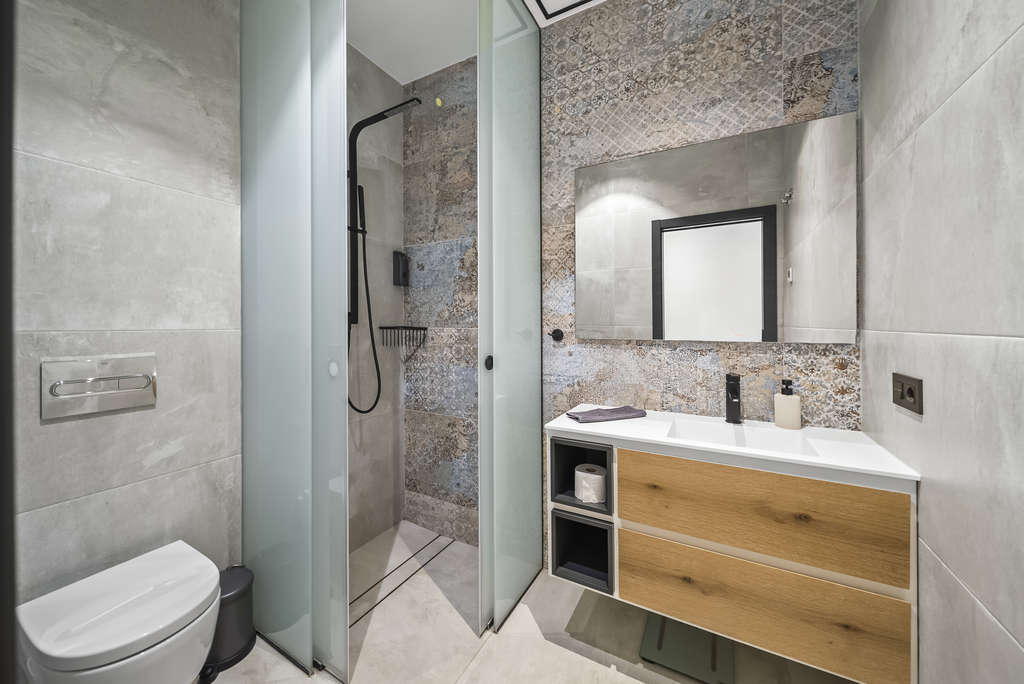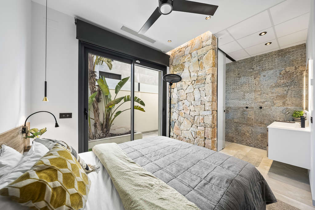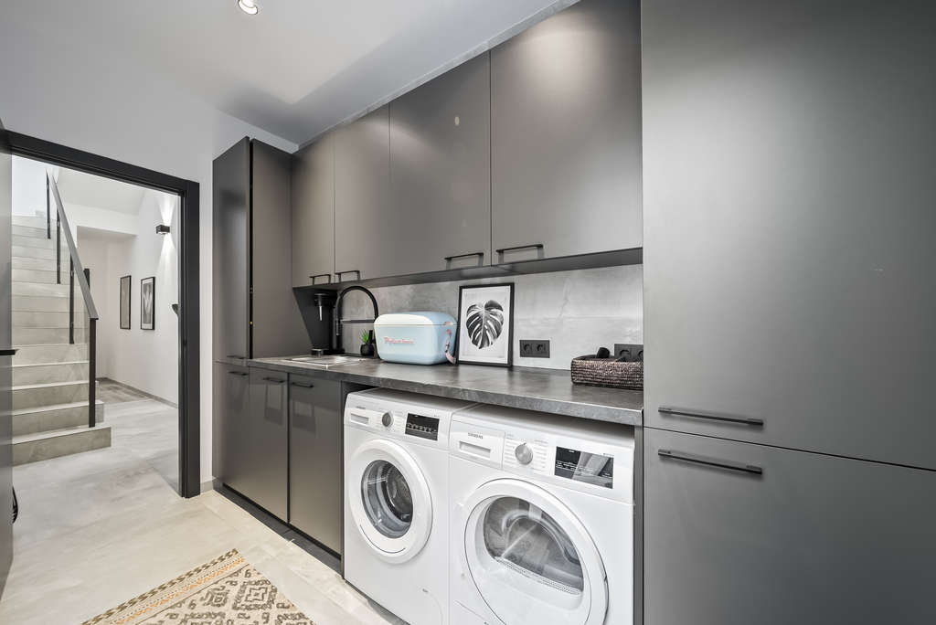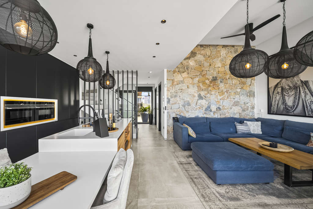 En la planta baja, encontrarás una cocina moderna que fluye hacia el luminoso salón. Desde aquí, tienes acceso directo a la amplia terraza exterior, perfecta para disfrutar de noches de barbacoa, relajarte al sol o darte un refrescante baño en tu piscina privada de agua salada. En esta planta también hay un dormitorio con baño en suite y un aseo para invitados. Para mayor confort, la vivienda cuenta con suelo radiante en el salón, la cocina, la entrada, el aseo de invitados y todos los baños.
