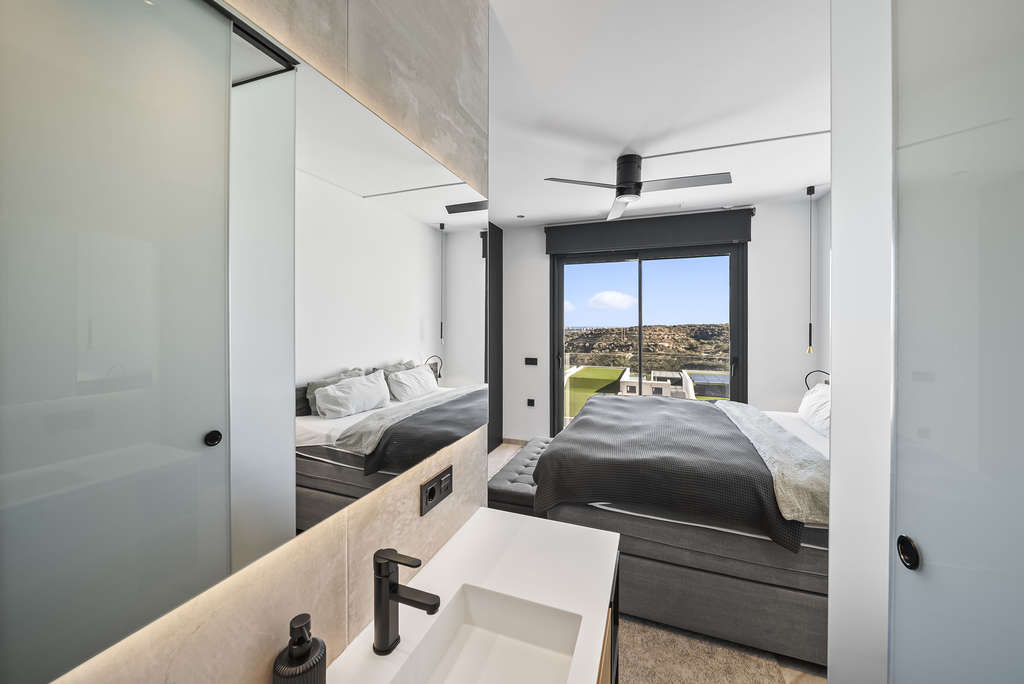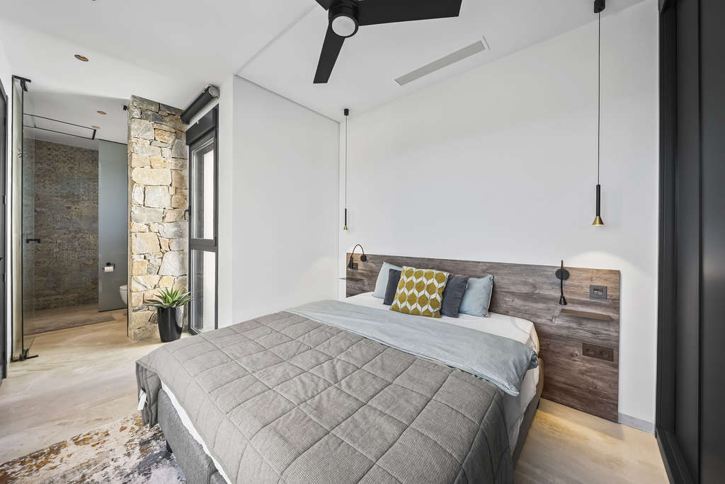 En la primera planta, hay dos dormitorios adicionales, ambos con baño privado. Uno de los dormitorios tiene también un balcón privado, el lugar ideal para comenzar el día con un café y disfrutar de las vistas. El dormitorio principal, en la misma planta, ofrece un ambiente relajante y un amplio espacio de almacenamiento.