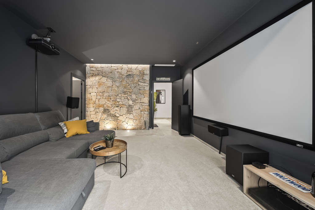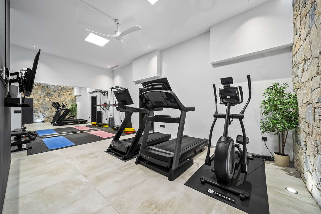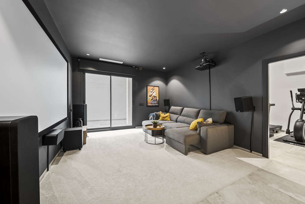 El sótano de la villa ofrece aún más espacio y posibilidades. Aquí encontrarás una sala de estar adicional, ideal como zona de relax o cine en casa, un dormitorio con baño en suite y un gimnasio para los que quieran mantenerse activos. Desde el sótano también se accede a un acogedor patio donde los propietarios actuales han colocado una mesa de ping-pong, un lugar perfecto tanto para el descanso como para el entretenimiento. Además, la vivienda cuenta con una práctica lavandería, un trastero y un amplio garaje con mucho espacio.