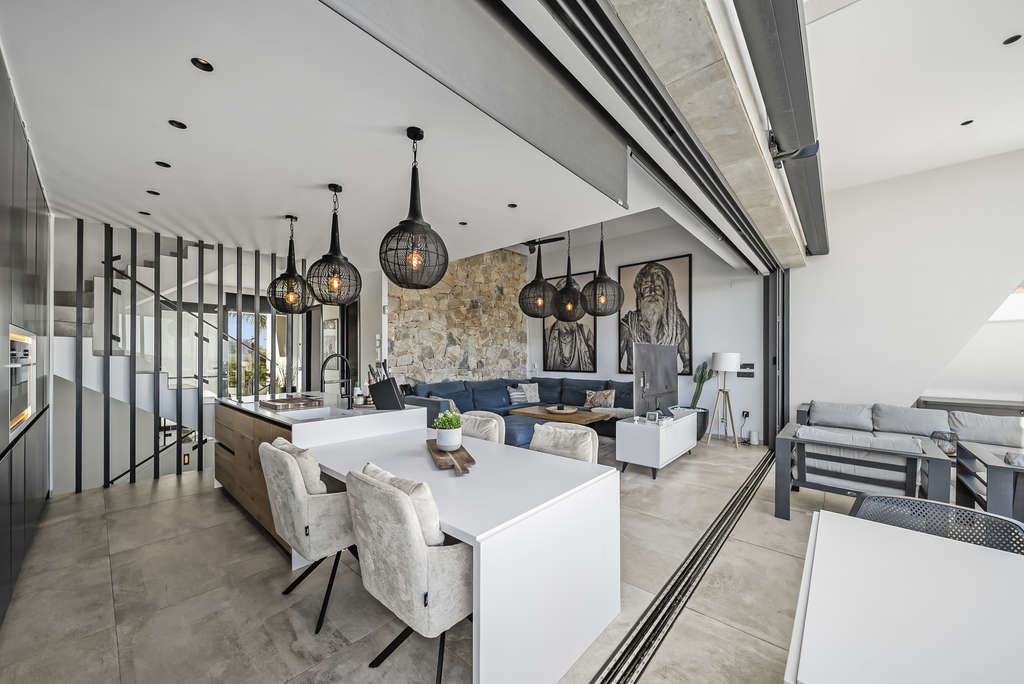 Bienvenido a esta impresionante villa de 252 m² – una vivienda que combina un diseño moderno con comodidad y funcionalidad. Aquí te recibirán materiales elegantes, techos altos y grandes ventanales que inundan el espacio de luz natural. La distribución abierta entre la cocina y el salón crea un ambiente acogedor donde la familia y los amigos pueden reunirse.