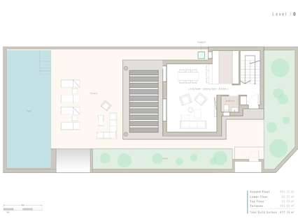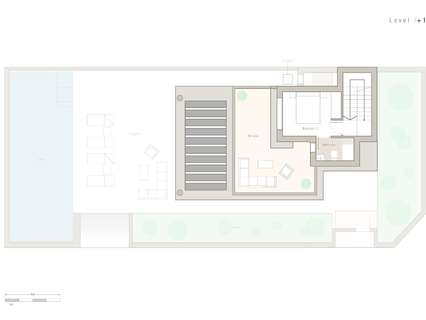 La planta baja le da la bienvenida con una luminosa sala de estar y comedor de planta abierta, perfectamente conectada con la soleada terraza y una gran piscina privada de 4x10 m, ideal para recibir invitados o simplemente disfrutar del tranquilo entorno.