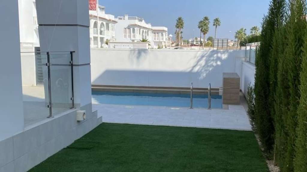 Villa moderna de lujo con amplia parcela y jardín privado, piscina y aparcamiento privado. Cuenta con 3 dormitorios y 3 baños, distribuidos en dos plantas y con un magnífico solárium. La casa tiene una superficie total de 137 m², una terraza de 114 m² y una parcela de 312 m². Se trata de una urbanización mediterránea cerrada con una amplia zona verde y tres piscinas, ubicada en la exclusiva zona de Ciudad Quesada, en el distrito de Donna Peppa, rodeada de casas modernas de nueva construcción. El bungalow cuenta con su propio patio y aparcamiento. En las inmediaciones encontrará varios supermercados, tres colegios, guarderías, un mercado dominical con productos agrícolas frescos, bares y restaurantes a poca distancia.