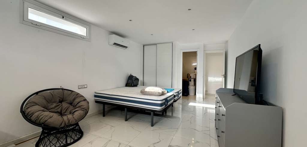 La villa cuenta con una superficie construida de 132 m² y ofrece cinco amplios dormitorios y tres baños modernos, proporcionando espacio más que suficiente para familia e invitados. Las zonas de estar son luminosas y de concepto abierto, con acceso directo a terrazas exteriores y al jardín — perfectas para disfrutar del clima mediterráneo.