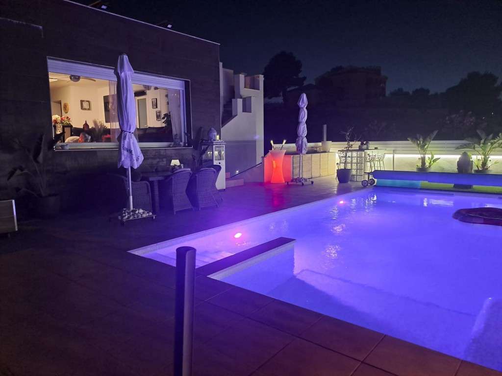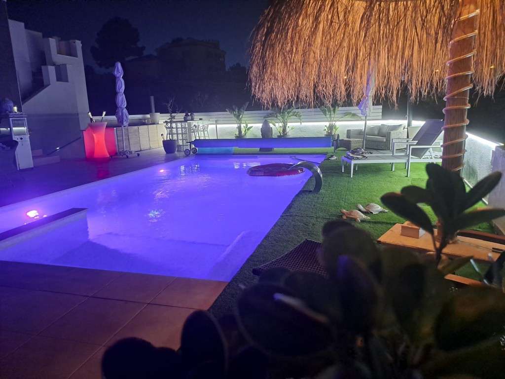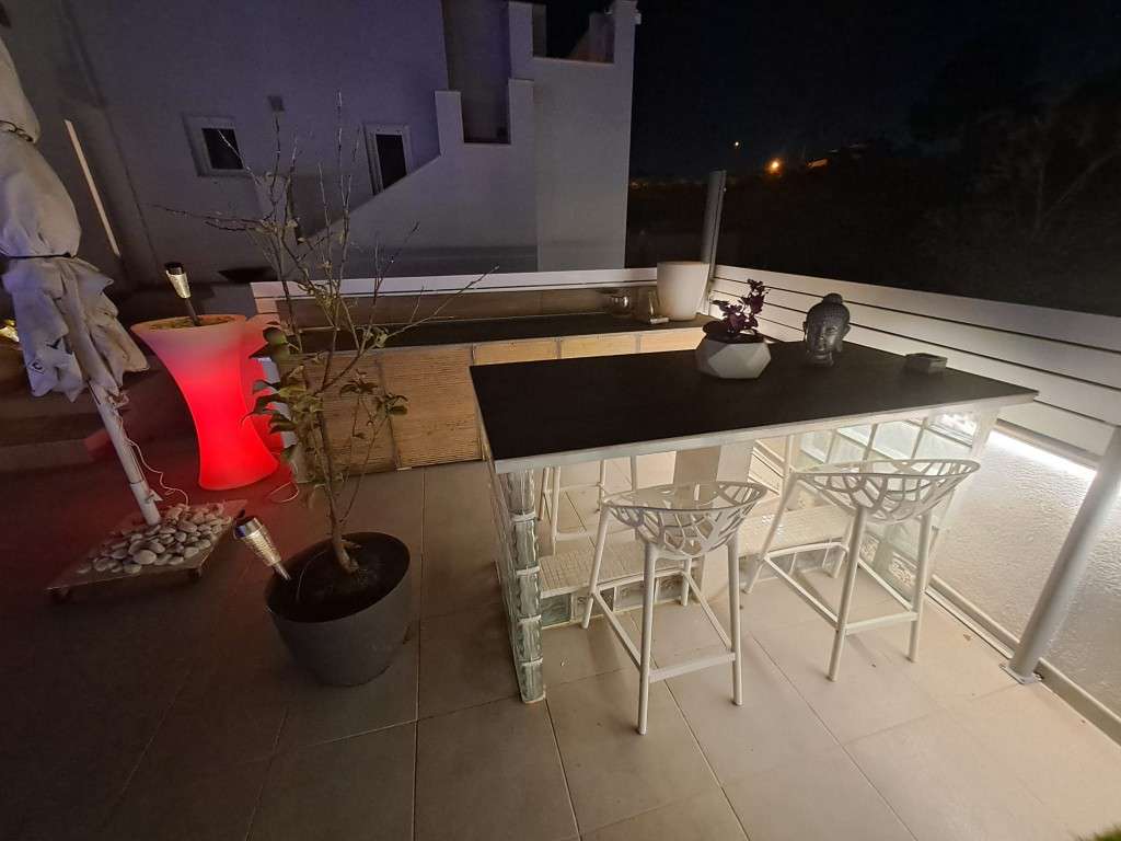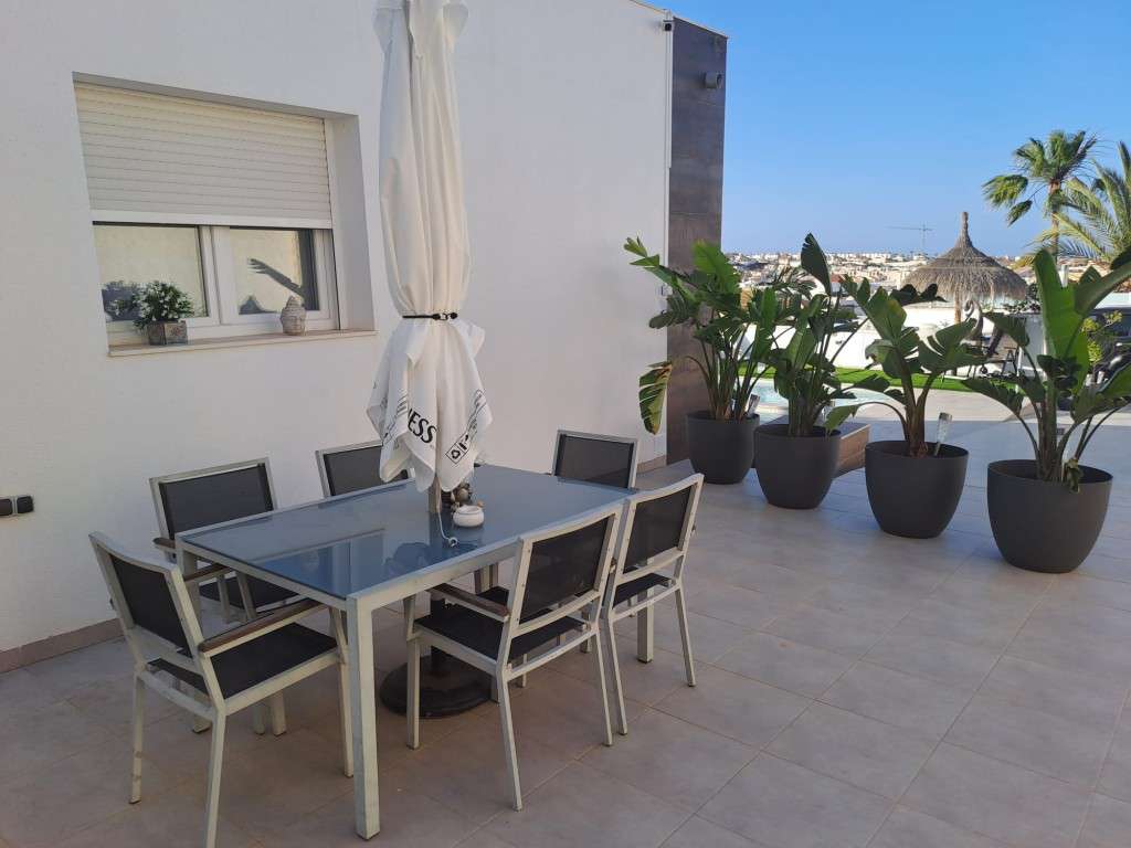 Esta hermosa villa moderna se encuentra en la parte alta de Ciudad Quesada. La villa principal cuenta con un amplio salón-comedor y cocina, dos dormitorios grandes, ambos con baño privado, y una vista espectacular de la piscina y el valle desde el salón. Dispone de calefacción por infrarrojos y aire acondicionado. Un estudio independiente incluye dormitorio, baño, TV, calefacción, aire acondicionado, nevera y terraza. Un apartamento independiente dispone de salón-comedor, dos dormitorios, baño, cocina pequeña, calefacción, aire acondicionado y terraza. Un apartamento independiente en la planta baja cuenta con jardín, un amplio salón-comedor, baño, dormitorio y aire acondicionado. La piscina está climatizada y cuenta con jacuzzi. Iluminación nocturna LED. Toldos en el tejado.