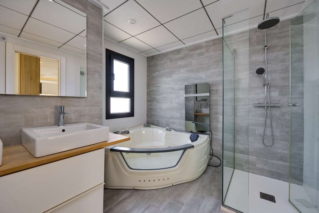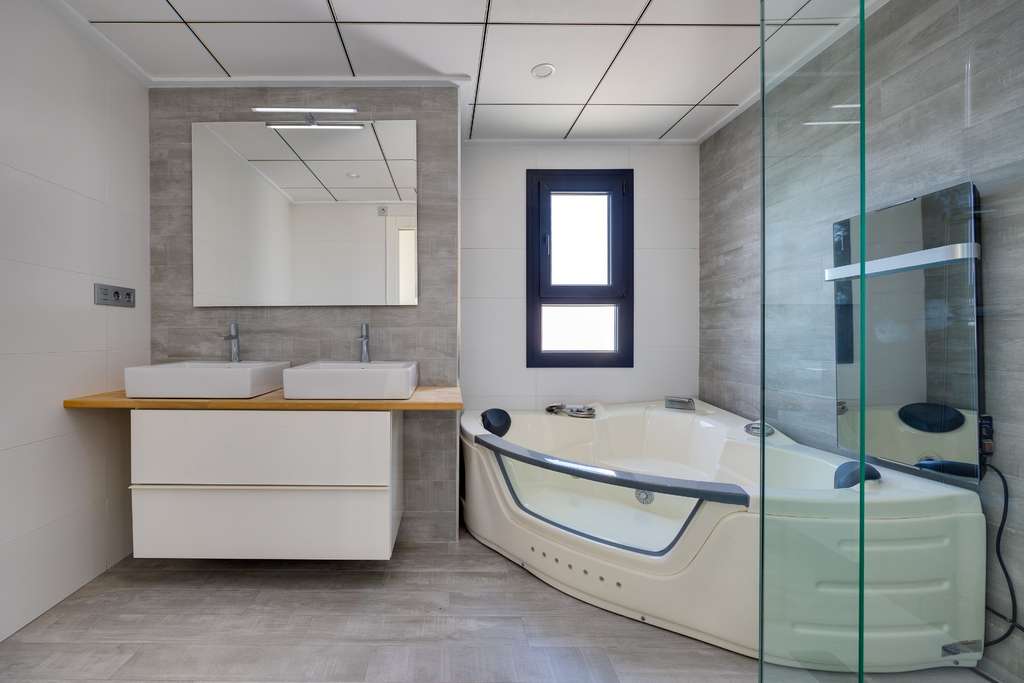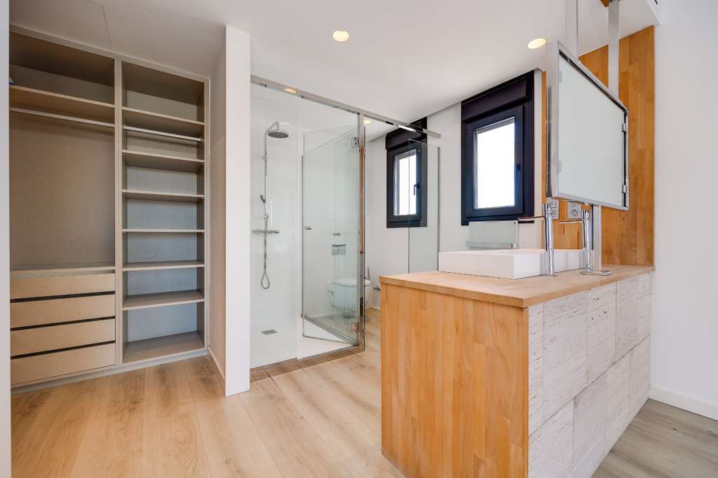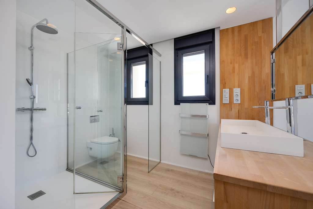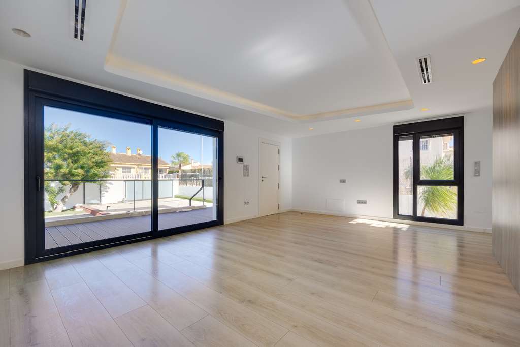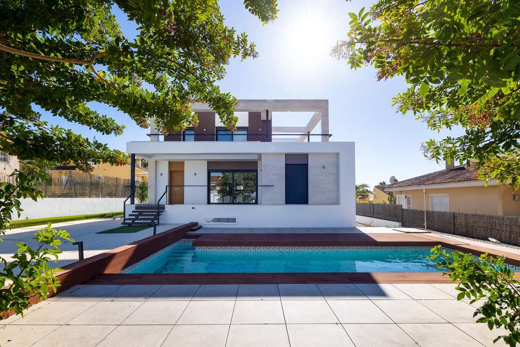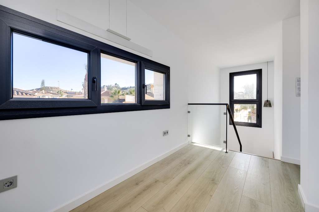 La villa está construida con altos estándares modernos , con una distribución bien pensada y materiales de primera calidad. Los amplios ventanales permiten la entrada de abundante luz natural, creando un ambiente luminoso, amplio y confortable que se adapta perfectamente al clima mediterráneo y al entorno abierto.