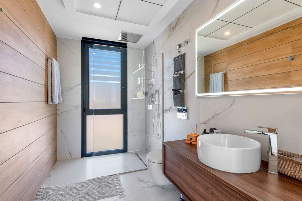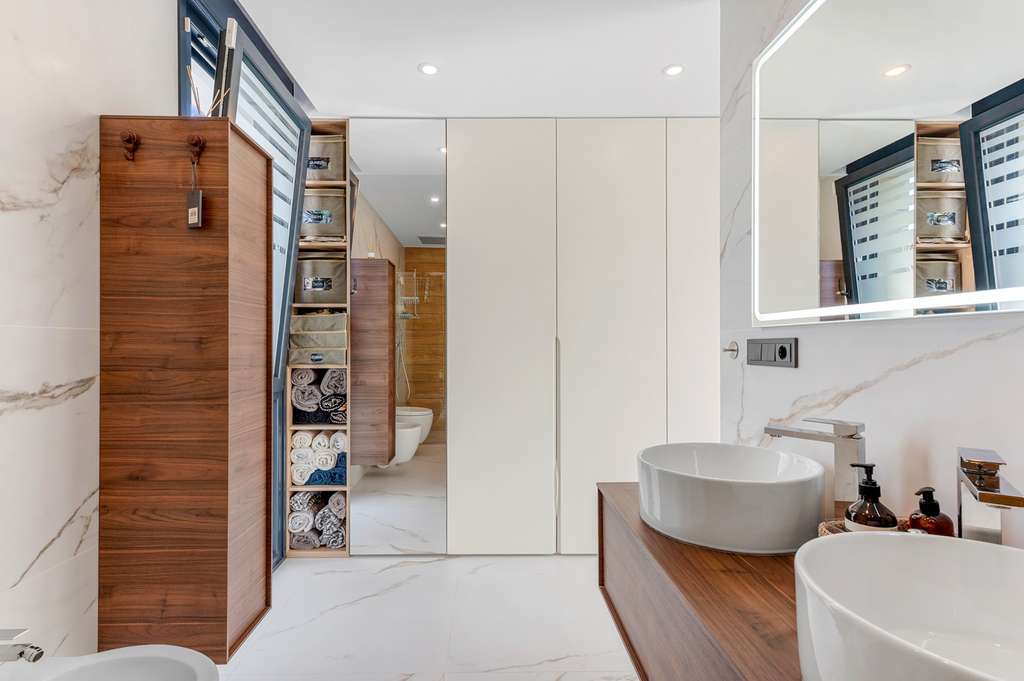 Encontrará dos exquisitos dormitorios adicionales con baño privado que dan directamente a una terraza panorámica, ofreciendo extraordinarias vistas panorámicas a los Lagos Salados, el mar Mediterráneo y las montañas circundantes. El dormitorio más grande cuenta con un baño privado más amplio y su propia terraza privada, además de ofrecer acceso directo a la terraza compartida y sus impresionantes vistas. #13; #13;