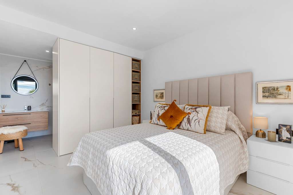 La planta baja también alberga dos elegantes dormitorios, uno a la izquierda y otro a la derecha, cada uno con baño en suite, armarios empotrados, vistas al jardín, a la piscina y parciales a los Lagos Salados. Toda la propiedad cuenta con calefacción por suelo radiante, lo que mejora el confort en cualquier época del año, mientras que un sistema de domótica totalmente integrado permite el control total de la villa a distancia desde cualquier lugar del mundo. #13; #13;