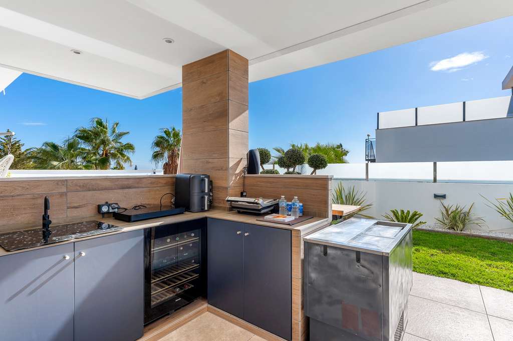 También encontrará acceso independiente a través de una pasarela de vidrio a la amplia terraza de la azotea, diseñada para el entretenimiento con cómodos asientos y un elegante bar totalmente equipado: el entorno perfecto para reuniones elegantes o veladas relajadas, todo mientras disfruta de vistas ininterrumpidas del Mediterráneo y espectaculares puestas de sol. #13; #13;