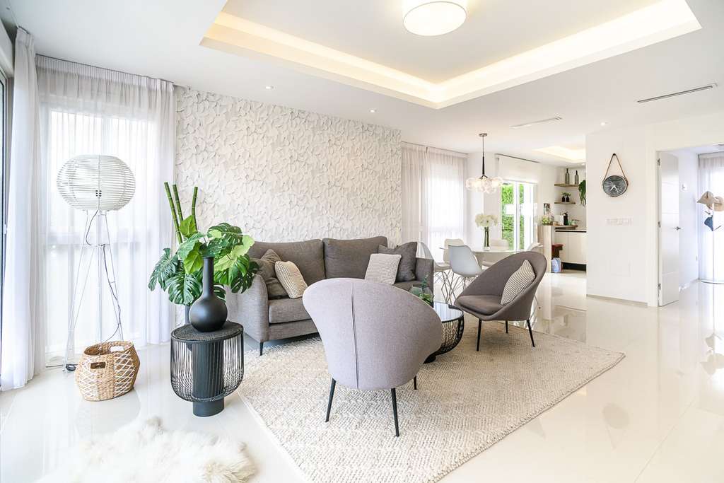 Tres habitaciones espaciosas, todas luminosas y bien proporcionadas con excelente espacio de almacenamiento. Tres baños modernos, incluido un elegante baño en suite. Una sala de estar luminosa y acogedora, perfecta tanto para relajarse como para entretenerse. Una elegante cocina abierta, totalmente equipada y diseñada teniendo en cuenta tanto la funcionalidad como la elegancia. Una generosa terraza en la azotea, ideal para disfrutar del sol mediterráneo, comidas al aire libre y vistas abiertas. Aire acondicionado central en toda la casa para mayor comodidad durante todo el año.