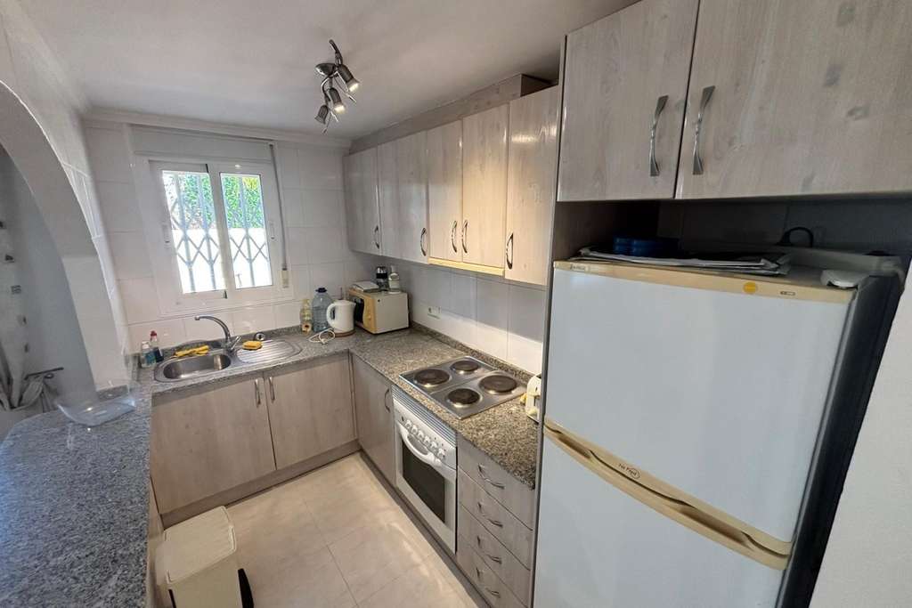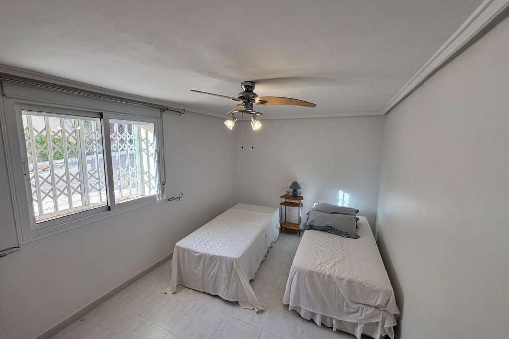 Aquí les presentamos esta magnífica villa en la prestigiosa zona de La Fiesta. La propiedad se distribuye en dos plantas. La planta superior cuenta con tres dormitorios dobles, dos baños (uno de ellos en suite), salón y cocina. Dispone de una amplia terraza cubierta con vistas a la espectacular piscina. En la planta baja, con entrada independiente, se encuentra un apartamento independiente con dos dormitorios dobles, baño, salón y cocina. La propiedad está situada en una gran parcela con numerosas terrazas y una gran piscina privada. Además, incluye garaje y solárium con vistas a los lagos. Se ofrece prácticamente amueblada.