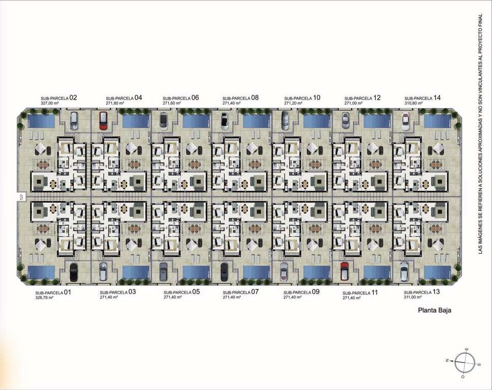 Las propiedades incluyen un sótano en bruto de aproximadamente 120 m², al que se accede a través de una puerta de servicio para facilitar el mantenimiento y el uso futuro. Para aquellos que buscan personalizar sus hogares, existe la opción de terminar el sótano con un coste adicional, lo que permite la instalación de una rampa de garaje, la creación de habitaciones adicionales, o la adición de espacios más funcionales. Además, el solarium se puede completar por un coste adicional, proporcionando aún más opciones de vida al aire libre.