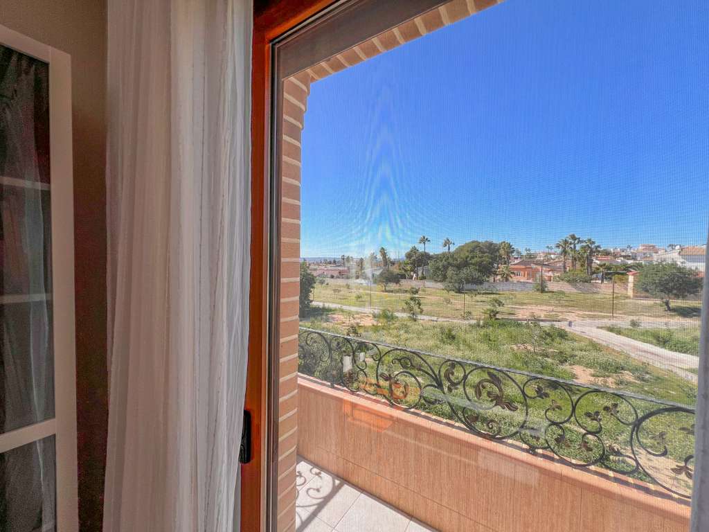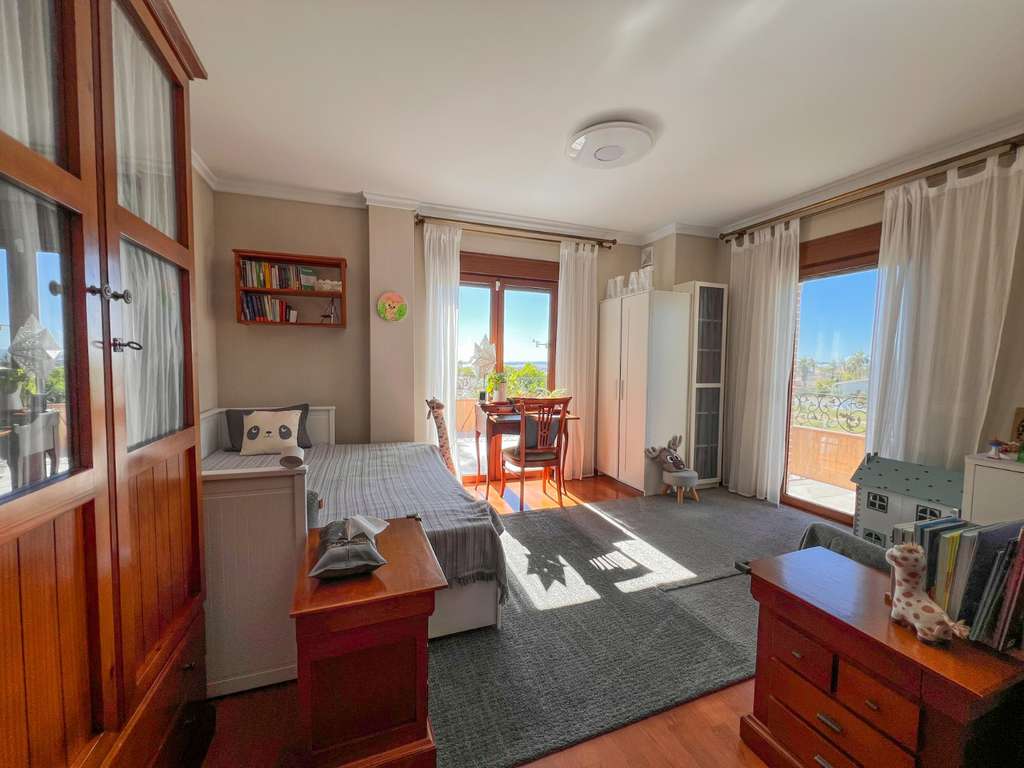 En la primera planta, la villa cuenta con tres dormitorios, uno de ellos en suite con amplio vestidor independiente. Desde el dormitorio principal se accede a un balcón con impresionantes vistas al parque y al Lago Rosa. Uno de los dormitorios actualmente se utiliza como despacho, aunque puede adaptarse fácilmente a dormitorio.