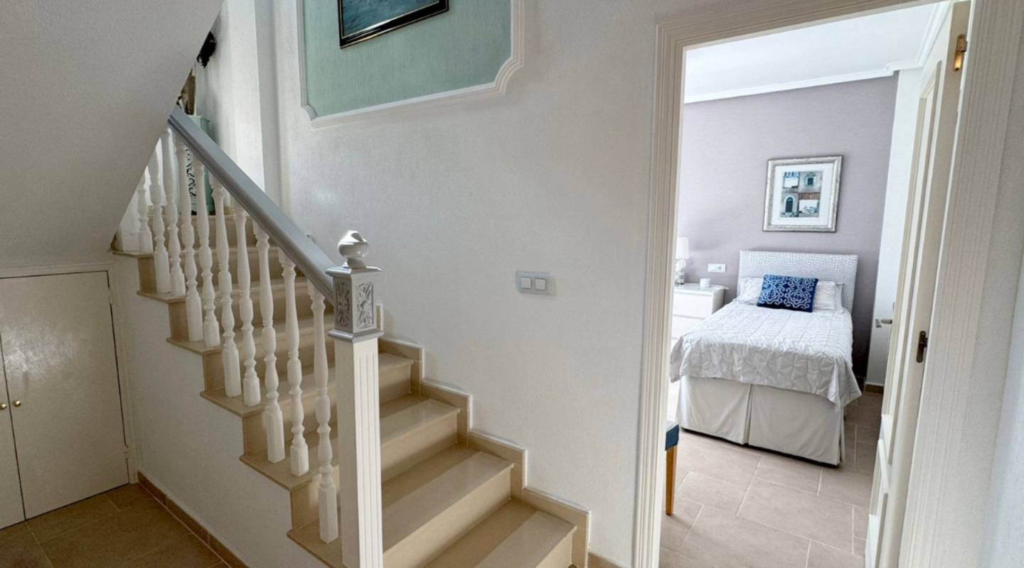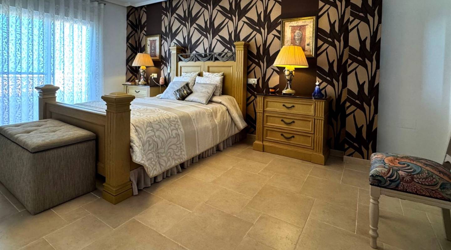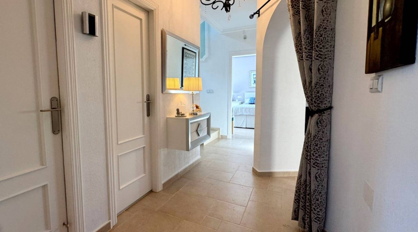 La propiedad ofrece tres amplios dormitorios y dos baños, incluida una refinada suite principal en la planta superior con terraza privada, vestidor a medida y elegante cuarto de baño.
