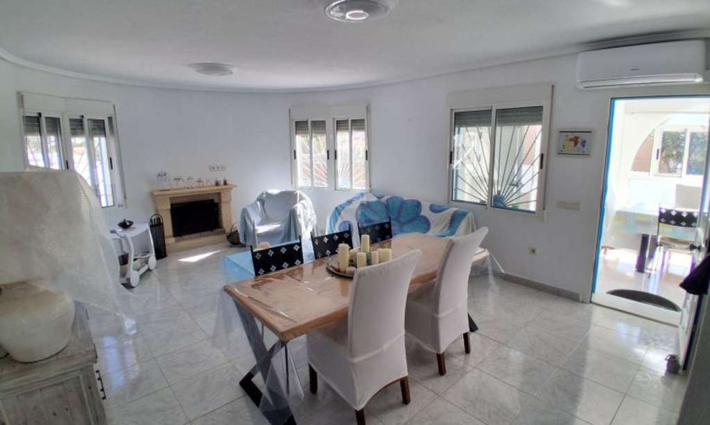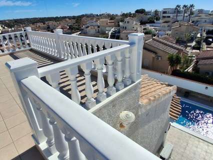 Chalet independiente de estilo mediterráneo situado en una de las zonas más auténticas y consolidadas de Ciudad Quesada, a solo 1,2 km del campo de golf y a 9 km de las playas de Guardamar. La vivienda se asienta sobre una parcela de 500 m² y ofrece una distribución amplia y muy funcional, ideal tanto para residencia habitual como para inversión.La casa está construida en dos plantas. En la planta baja se encuentra el acceso para vehículo con zona de aparcamiento, un espacio de barbacoa, una piscina privada de diez por cinco metros y un porche que da paso a un salón muy amplio con cocina americana reformada. En esta misma planta se ubican tres dormitorios dobles y dos baños completos.La planta superior, con acceso independiente, ofrece una suite de gran tamaño, un dormitorio doble adicional y dos terrazas amplias con vistas panorámicas, lo que convierte este nivel en un espacio perfecto para invitados, alquiler vacacional o incluso para que dos familias disfruten de la vivienda con total independencia.La propiedad se encuentra en un estado impecable, muy cuidada, completamente equipada y amueblada. Es una oportunidad excepcional para quienes buscan una vivienda con carácter, privacidad, amplitud y una ubicación privilegiada dentro de Ciudad Quesada.