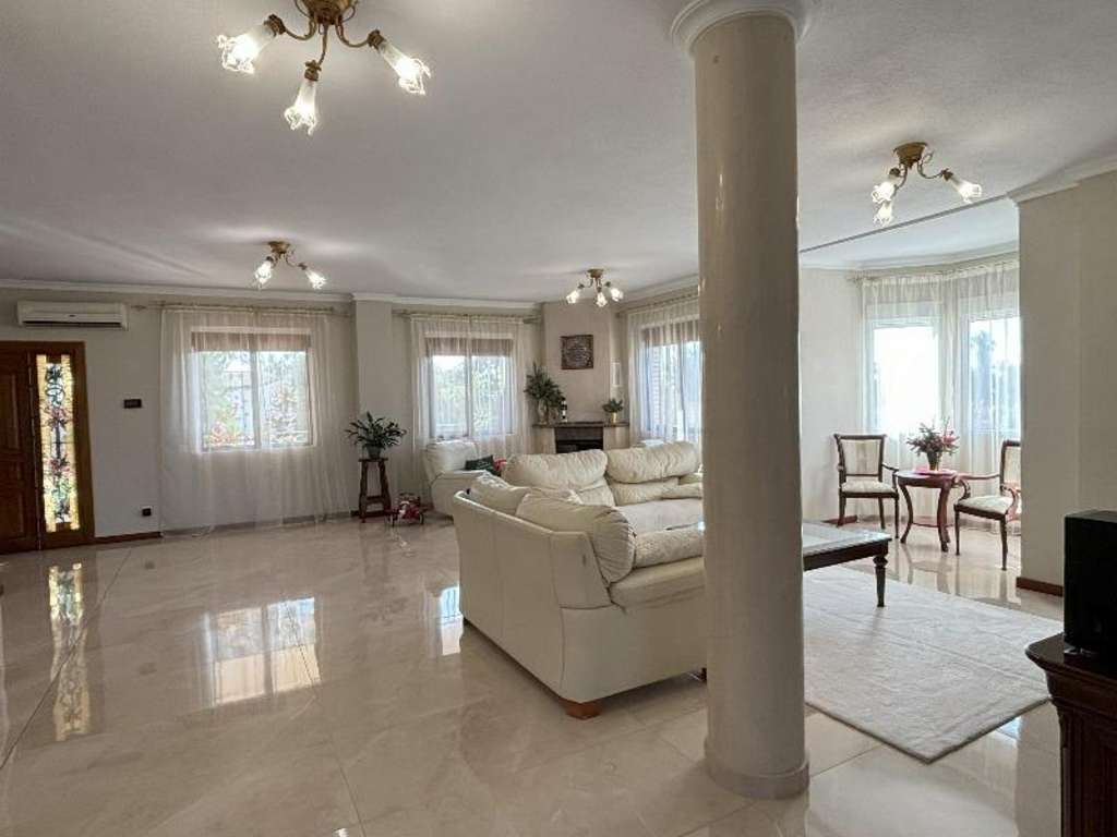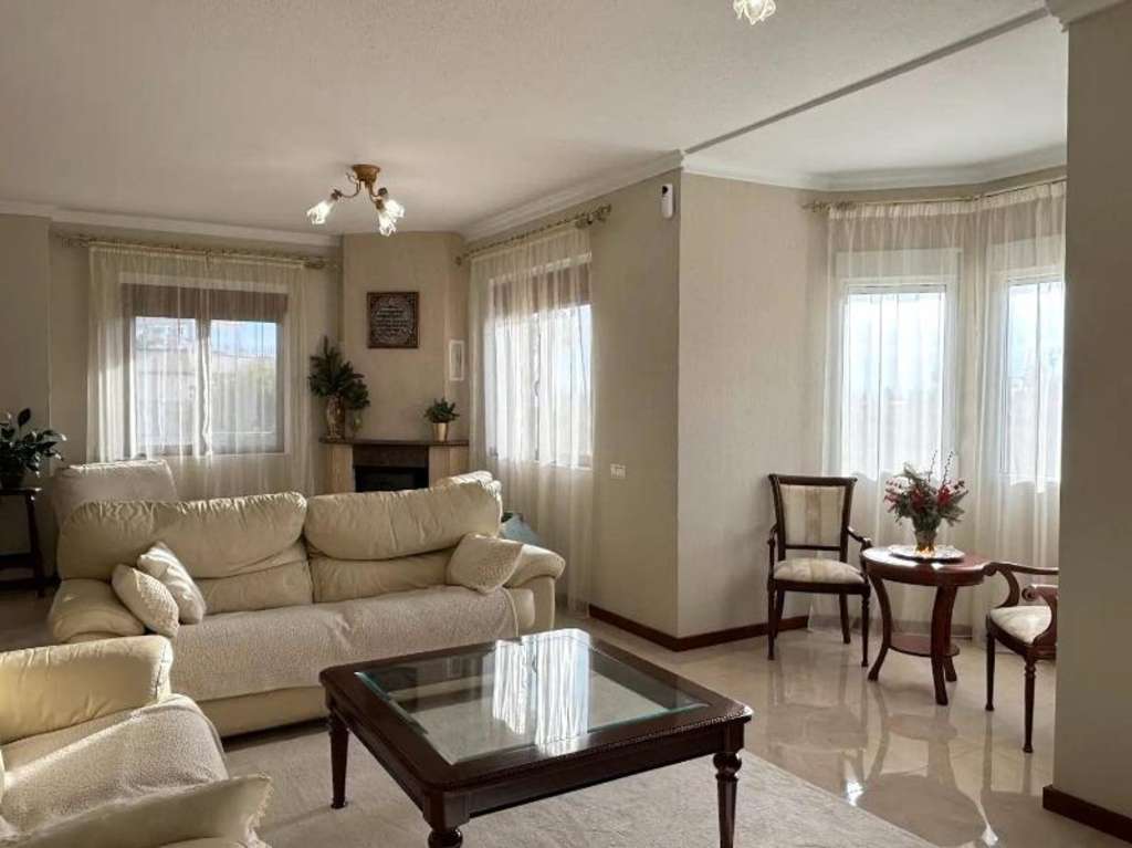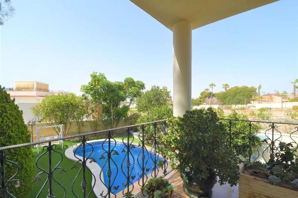 Magnifica villa de lujo de 3 plantas, totalmente independiente, en gran parcela con piscina propia y rodeada de jardines, en Ciudad Quesada. Al entrar a la casa, hay un porche con una gran terraza de unos 35 m2. La planta principal dispone de un vestíbulo, un salón muy espacioso y luminoso con chimenea, una sala de estar, un comedor, una gran cocina independiente equipada con todos los electrodomésticos con acceso a la zona de barbacoa y al jardín y un cuarto de baño. Desde allí, se accede por una escalera de mármol a la planta superior. La planta superior dispone de tres dormitorios dobles, un estudio (se puede convertir en dormitorio u otro) y dos cuartos de baño (uno en-suite con hidromasaje con dormitorio principal). Desde los dormitorios, se accede a una gran terraza con magníficas vistas al parque y los alrededores. La villa cuenta también con una planta sótano (acceso mediante escalera interior) que dispone de un dormitorio, una sauna con sala de relajación y ducha de vapor, un cuarto de baño y un lavadero. Desde la planta sótano, se puede acceder a la zona de la piscina. Estilo contemporáneo, muy elegante. Grandes ventanales. Aire acondicionado. Sistema de calefacción con combustible que también proporciona agua caliente. Armarios empotrados en los dormitorios. Muebles de cocina de madera maciza con encimera de granito. Suelos de gres y parket de roble. Sistema de seguridad con videovigilancia. Materiales de muy alta calidad. Mucha luz natural. Todo ello rodeado por un hermoso jardín con árboles frutales, plantas mediterráneas, pequeño estanque con cascada, todo un encanto. Con piscina con jacuzzi, gran porche semi abierto para zona de barbacoa, cocina de verano, pérgola, zona de aparcamiento para vehículos y trastero. Esta esplendida villa ha sido cuidadosamente diseñada para el máximo confort, relajación y privacidad. Muy buena ubicación, entorno tranquilo, cerca de todos los servicios, restaurantes, supermercados, bancos, centros médicos, colegios, parque acuático, Campos de Golf de la Marquesa, etc..., a unos 10/15 minutes en coche de las magníficas playas de Guardamar.