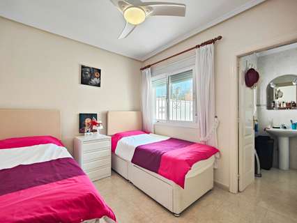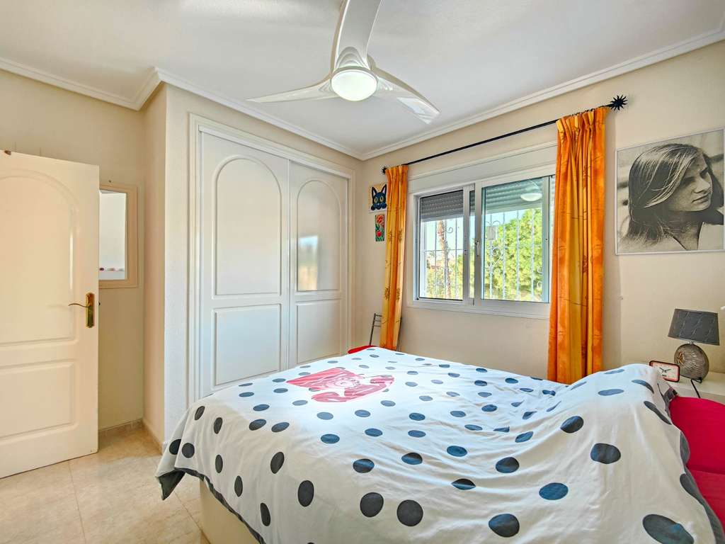 Presentamos este precioso chalet pareado ubicado en una parcela de 200 m² en una zona tranquila y muy demandada de Ciudad Quesada, Rojales. La vivienda se encuentra justo enfrente de una amplia zona verde, lo que garantiza vistas totalmente despejadas, gran privacidad y una agradable sensación de amplitud difícil de encontrar. La propiedad está distribuida íntegramente en una sola planta y construida en altura con cámara de aire, lo que mejora el aislamiento y el confort durante todo el año. Cuenta con 2 dormitorios con armarios empotrados y 2 baños completos, uno de ellos en suite. El salón es amplio y muy luminoso gracias a su excelente orientación oeste, y dispone de aire acondicionado. Todas las estancias cuentan además con ventiladores de techo. La cocina es independiente y se entrega totalmente equipada. En el exterior destaca su jardín privado de aproximadamente 100 m², perfecto para disfrutar del clima de la Costa Blanca, así como un porche de unos 15 m² orientado al oeste con preciosas vistas abiertas a la zona verde. La propiedad también dispone de un solárium privado de 20 m² ideal como zona de relax, entrada para poder aparcar el coche dentro de la parcela y trastero con lavadora. La fachada y los muros exteriores han sido recientemente pintados y la vivienda se vende amueblada con electrodomésticos incluidos. La urbanización cuenta con piscina comunitaria y la vivienda se encuentra cerca del centro de Ciudad Quesada, con todos los servicios, supermercados, restaurantes y zonas de ocio a poca distancia. Una excelente oportunidad tanto como residencia habitual, vivienda vacacional o inversión en una de las zonas más consolidadas de la Costa Blanca Sur.
