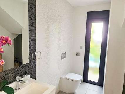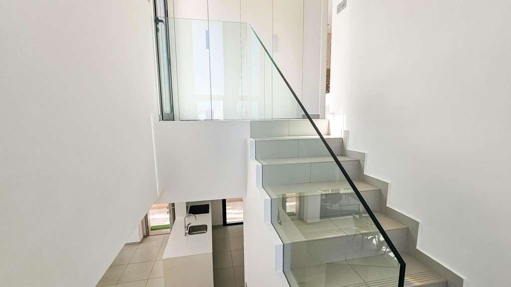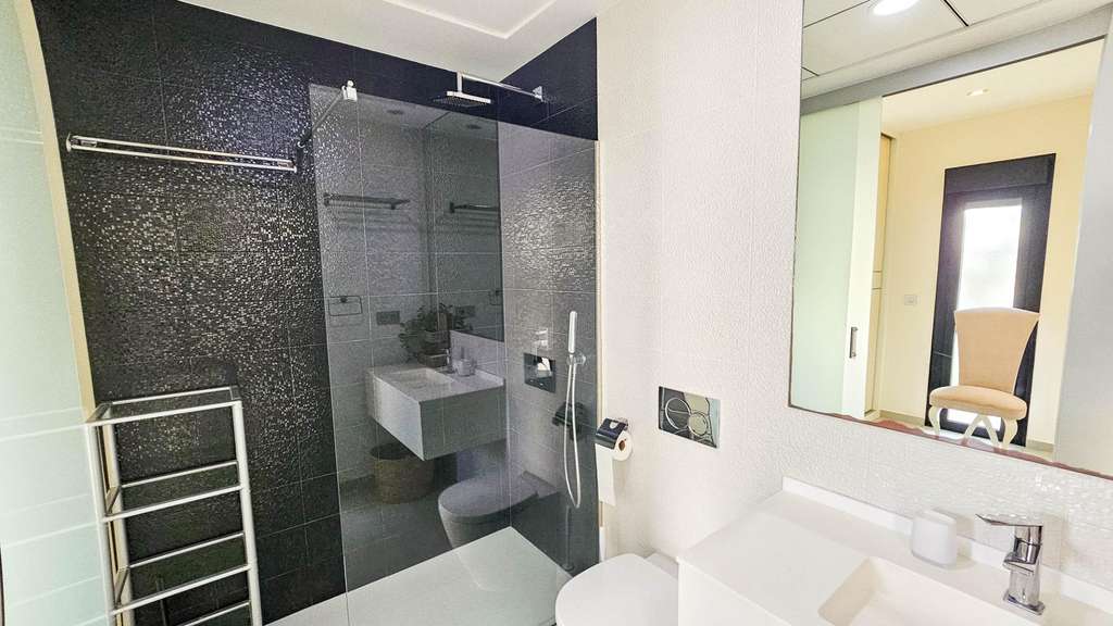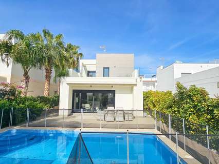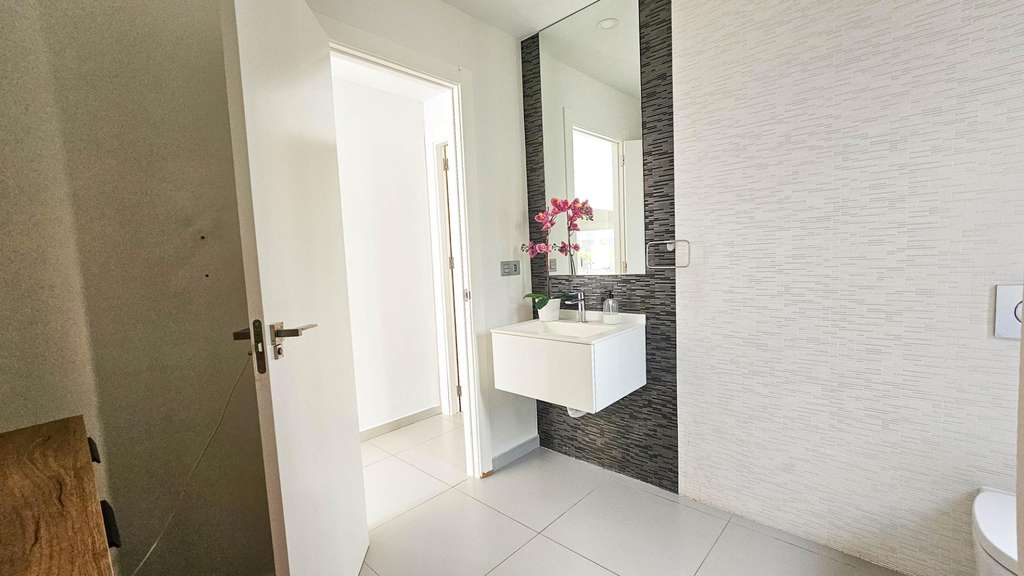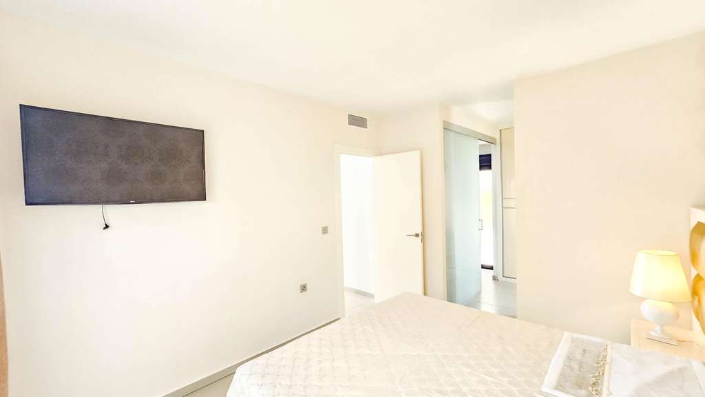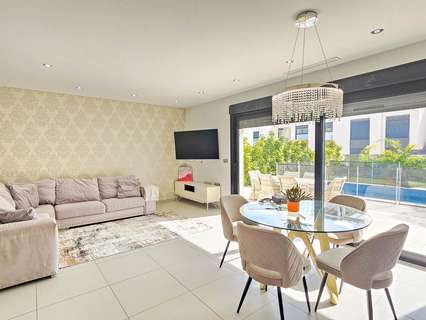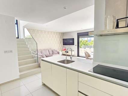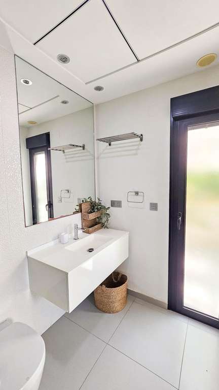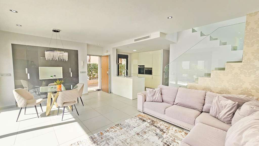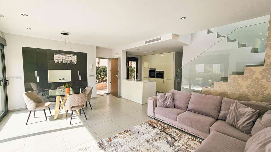 Presentamos esta magnífica villa de estilo contemporáneo, ubicada en una zona residencial tranquila y bien comunicada — un lugar ideal para quienes valoran la comodidad, la privacidad y un alto nivel de vida. Construida en 2014, esta propiedad combina diseño moderno con materiales de alta calidad y una distribución pensada para ofrecer el máximo confort en cada estancia. La villa tiene una superficie construida de 125 m² sobre una parcela de 300 m². La vivienda se distribuye en dos plantas, con un amplio solárium en la azotea — perfecto para tomar el sol y disfrutar de vistas abiertas durante todo el año. En la planta baja se encuentra un salón-comedor luminoso y espacioso de concepto abierto, conectado con una cocina moderna totalmente equipada. Aquí también se encuentra el dormitorio principal con vestidor, un baño completo y un aseo de cortesía, todos con acceso directo al jardín y a la piscina privada. En la planta superior hay dos dormitorios adicionales de gran tamaño y otro baño completo, todos con abundante luz natural y acceso a una terraza privada. Una escalera exterior conecta esta planta con el solárium, creando un espacio privado para relajarse, recibir invitados o disfrutar del clima mediterráneo. La villa cuenta con aire acondicionado central, suelo radiante en toda la casa y se vende completamente amueblada, lista para entrar a vivir. El exterior combina zonas de descanso con una espectacular piscina privada, creando condiciones ideales para disfrutar al aire libre con total privacidad. Además, dispone de plaza de aparcamiento en la parcela, garantizando comodidad y seguridad. El estilo arquitectónico moderno, los acabados de calidad y los espacios interiores amplios hacen de esta villa una opción excelente tanto para residencia permanente como para casa de vacaciones. Esta villa representa la esencia del confort mediterráneo: amplitud, luz, estilo y excelente ubicación en un entorno tranquilo y práctico. Un hogar perfecto para quienes desean disfrutar del sol, la privacidad y el lujo al máximo.