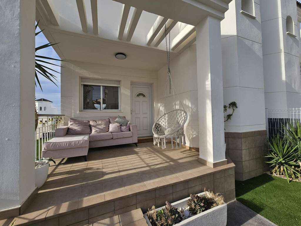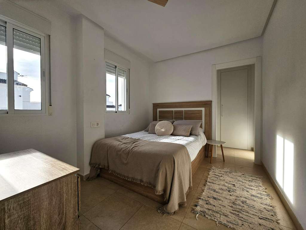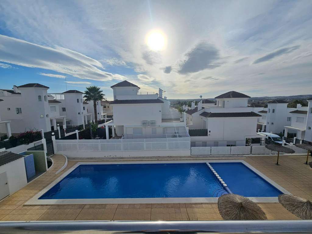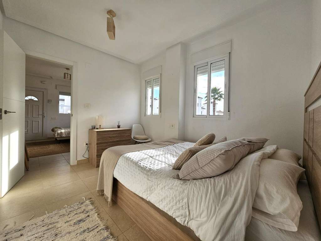 ¡Bienvenido a la casa de sus sueños en San Fulgencio, Alicante! Esta encantador semi pareado ofrece la combinación perfecta de comodidad y lujo. Con 3 dormitorios y 3 baños, esta luminosa y acogedora residencia es ideal para familias o para aquellos que aprecian el espacio. La cocina independiente está totalmente equipada, ofrece mucho almacenamiento y tiene acceso a un pequeño patio trasero. Cada habitación cuenta con aire acondicionado frío y caliente, lo que garantiza un ambiente agradable durante todo el año. Lo más destacado de esta propiedad son sus impresionantes zonas exteriores, que invitan al relax y al entretenimiento en medio de magníficas vistas panorámicas. Una zona ajardinada de bajo mantenimiento con césped artificial, terraza y preciosas palmeras y árboles frutales son perfectos para disfrutar de la vida en el exterior. El dormitorio principal, situado en la primera planta, da acceso a una gran terraza orientada al sureste con vistas a la piscina comunitaria y a las montañas en la distancia. El solárium ofrece 25 m² para celebrar una reunión nocturna bajo las estrellas o tomar el sol durante todo el día. Debajo de las escaleras encontramos un cómodo trastero. Situada a solo 5 km de playas con arena, podrá disfrutar de días soleados junto al mar siempre que lo desee. Además, al estar cerca de los servicios locales, todo lo que necesita está al alcance de la mano. Meticulosamente mantenida y en buen estado, esta casa promete una experiencia de mudanza sin preocupaciones. No pierda esta oportunidad de poseer un pedazo de paraíso: ¡programe su visita hoy mismo y dé el paso hacia un estilo de vida más brillante!