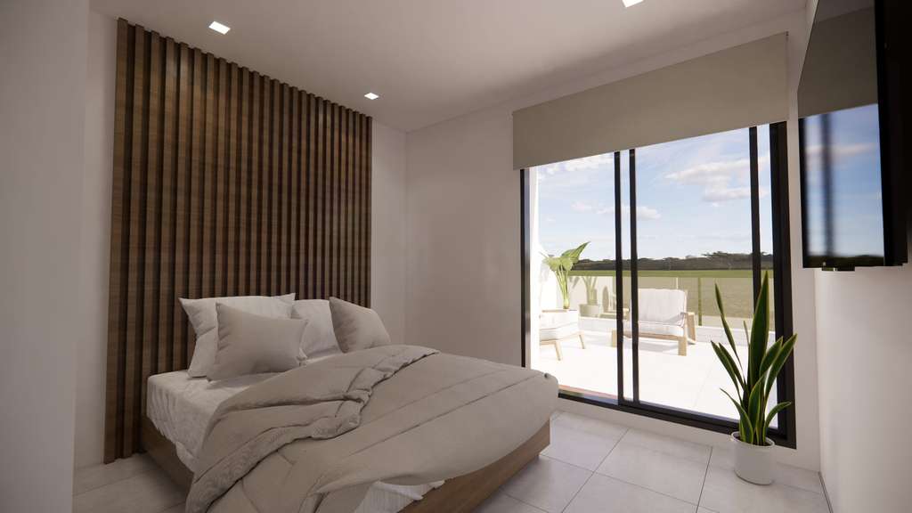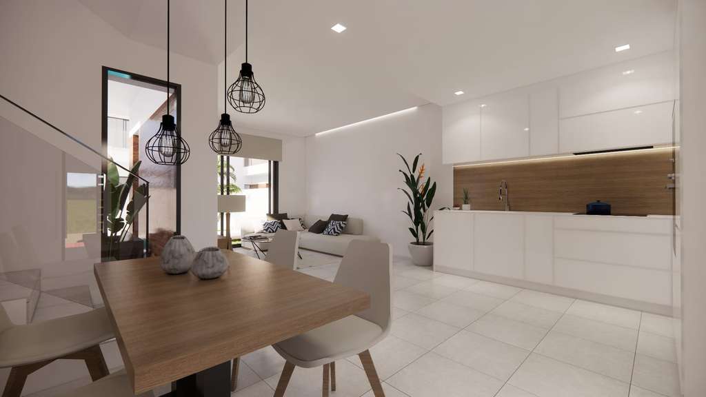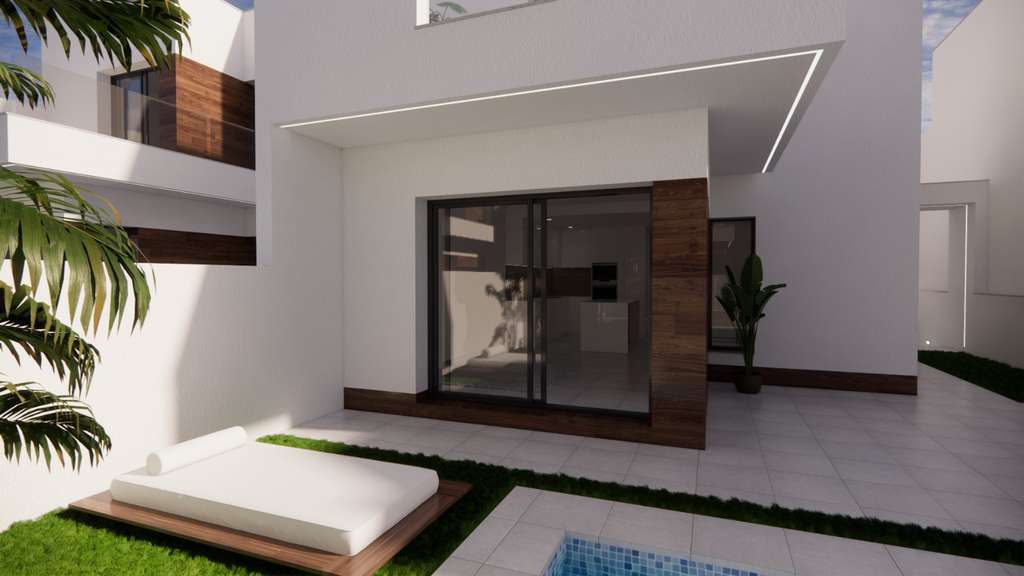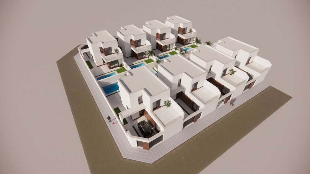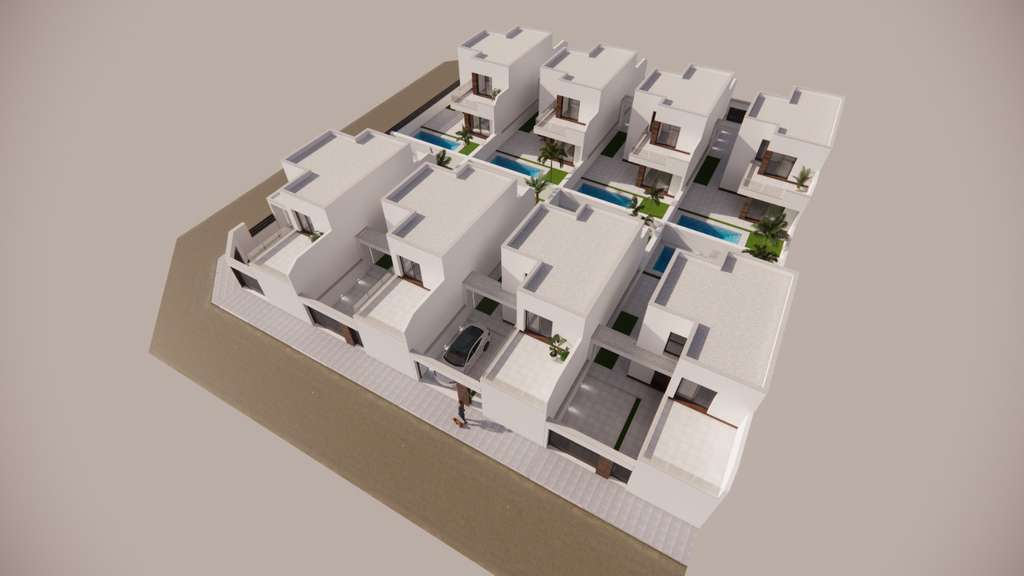 Estas villas de obra nueva con 3 dormitorios y 2 baños se encuentran en San Fulgencio, aproximadamente a 4 km de la hermosa playa de Guardamar del Segura donde podrá disfrutar del sol y el mar. Las villas disponen de un bonito salón con cocina totalmente equipada, incluidos electrodomésticos. En la planta baja tiene un amplio dormitorio con baño en suite y un aseo adicional. Más adelante en el segundo piso hay 2 dormitorios y un baño y cada uno de estos dormitorios también tiene una terraza. Además, desde la 2ª planta se accede al amplio solárium de 27,12 m². Además, estas villas también cuentan con preinstalación de aire acondicionado y placas solares.