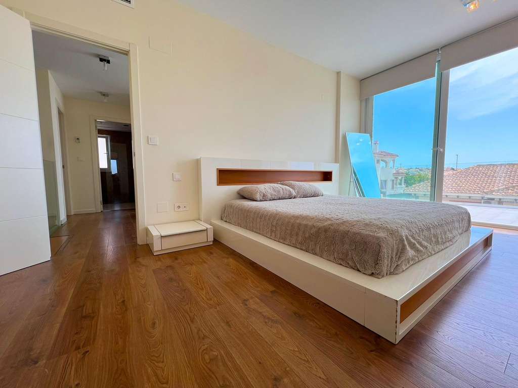 Moderna villa independiente en La Marina, San Fulgencio, con un diseño moderno. Cuenta con 322 m² construidos en una parcela de 585 m², esta propiedad se distribuye en dos plantas más sótano y ofrece todo lo necesario para disfrutar de un estilo de vida exclusivo.
