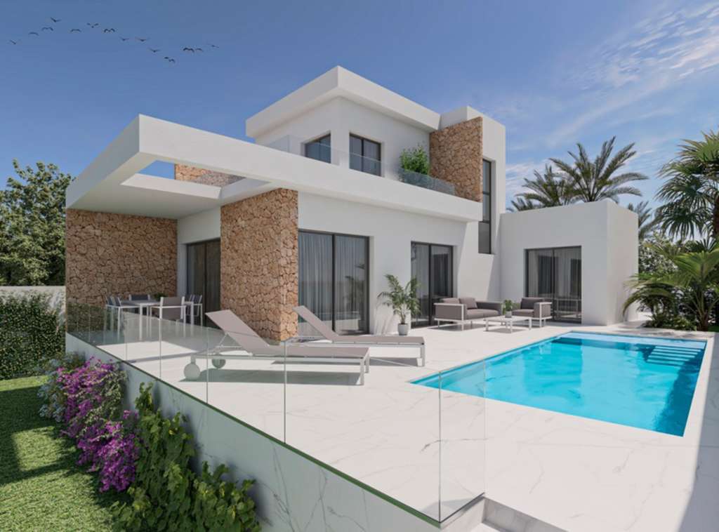 Villas de obra nueva en venta en San Fulgencio.Las villas cuentan con 4 dormitorios, 4 baños, salón, cocina, jardín privado y piscina. Opcional: solárium.San Fulgencio es una estupenda zona, situada cerca del mar en la zona de Guardamar del Segura y La Marina. La playa de arena más cercana está a sólo unos minutos en coche. Aquí encontrará todo lo que necesita para una vida cómoda. En pocos minutos en coche se encuentran los parques naturales de Torrevieja y los centros comerciales, campos de golf, aparcamiento para yates y muchas otras actividades.