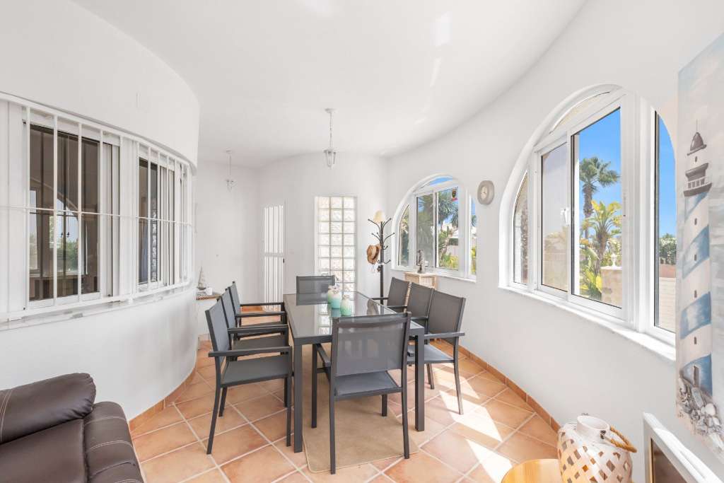 Se vende villa de 5 habitaciones en San FulgencioSe vende chalet independiente sobre una parcela de 885 m², ubicado en una tranquila zona residencial de San Fulgencio. La vivienda cuenta con 5 dormitorios y 5 baños (uno de ellos situado en la parte exterior, ideal como baño de piscina o para invitados), lo que la hace perfecta para familias grandes o como casa de vacaciones con gran capacidad.En su interior destaca un salón amplio con chimenea, comedor independiente, cocina totalmente equipada y un porche acristalado que permite disfrutar del exterior durante todo el año. También dispone de zona de lavandería y almacenamiento, así como terraza y solárium privado para aprovechar al máximo el clima mediterráneo.La zona exterior es simplemente espectacular: piscina privada, jardines amplios y cuidados, y un garaje cerrado con capacidad para dos coches.Una propiedad con mucho encanto, espacio, privacidad y comodidad, ideal para quienes buscan tranquilidad sin renunciar a los servicios cercanos.