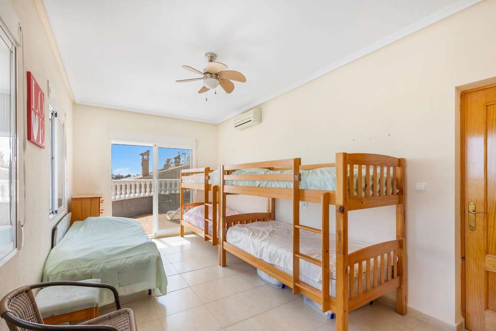Presentamos una villa independiente situada en una parcela privada de 885 m², ubicada en la zona de La Marina, en San Fulgencio. La propiedad dispone de 5 dormitorios y 5 baños, incluyendo un baño exterior que puede utilizarse como baño de piscina o para invitados. La distribución de la vivienda la hace adecuada tanto para una familia numerosa como para uso vacacional. El interior ofrece un salón amplio y luminoso con chimenea, comedor, cocina totalmente equipada y un patio acristalado que puede utilizarse durante todo el año. Además, cuenta con lavadero y un cuarto de servicio. La propiedad dispone de terraza y solárium privado, proporcionando un espacio ideal para el descanso y el disfrute del sol. En el exterior se encuentra una piscina privada, un jardín bien cuidado y un garaje cerrado con capacidad para dos coches. La propiedad ofrece amplitud, privacidad y confort, con fácil acceso a servicios e infraestructuras locales. Contacte con nosotros para concertar una visita a la propiedad.