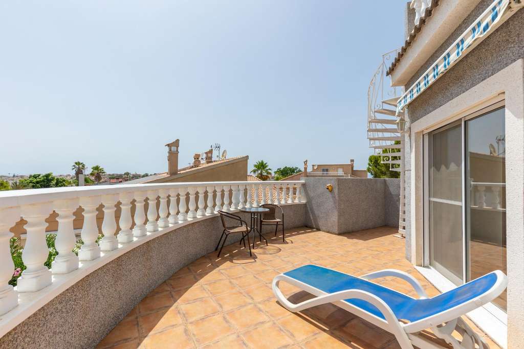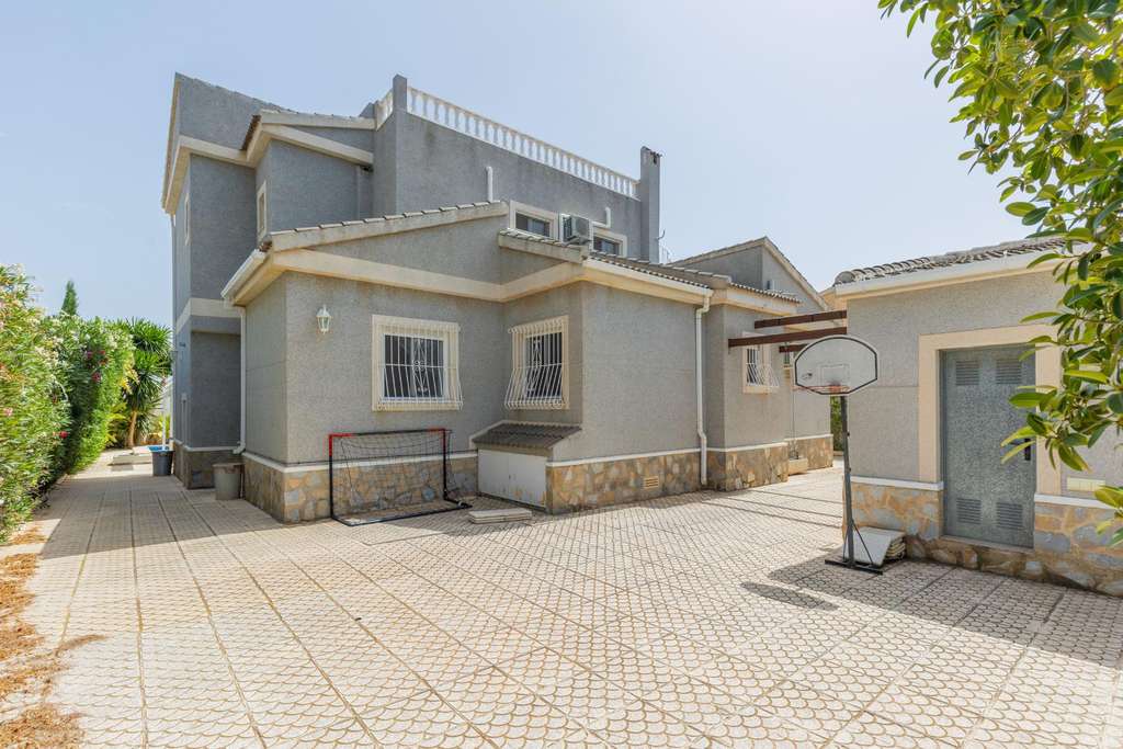 Presentamos una villa independiente situada en una parcela privada de 885 m², ubicada en la zona de La Marina, en San Fulgencio. La propiedad dispone de 5 dormitorios y 5 baños, incluyendo un baño exterior que puede utilizarse como baño de piscina o para invitados. La distribución de la vivienda la hace adecuada tanto para una familia numerosa como para uso vacacional. El interior ofrece un salón amplio y luminoso con chimenea, comedor, cocina totalmente equipada y un patio acristalado que puede utilizarse durante todo el año. Además, cuenta con lavadero y un cuarto de servicio. La propiedad dispone de terraza y solárium privado, proporcionando un espacio ideal para el descanso y el disfrute del sol. En el exterior se encuentra una piscina privada, un jardín bien cuidado y un garaje cerrado con capacidad para dos coches. La propiedad ofrece amplitud, privacidad y confort, con fácil acceso a servicios e infraestructuras locales. Contacte con nosotros para concertar una visita a la propiedad.