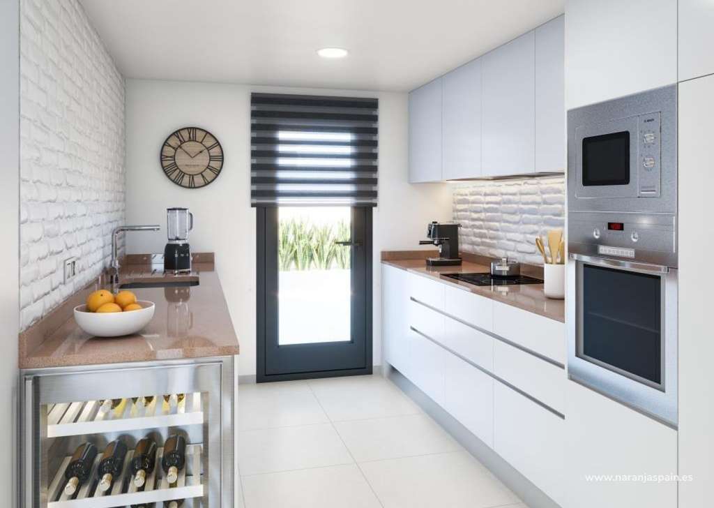 Distribución y diseño funcional para el máximo confortCada villa cuenta con una distribución práctica y luminosa, pensada para el disfrute del estilo de vida mediterráneo:3 dormitorios con armarios empotrados2 baños completos con muebles y mamparas de cristalCocina americana totalmente equipada con campana extractora y sistema de ósmosisAmplio salón comedor con acceso directo al jardínSolárium privadoJardín privado con piscina y zona de soláriumPlaza de aparcamiento en parcela