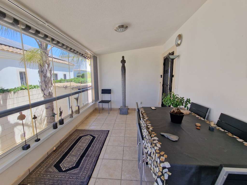 Adéntrese en su propio jardín mediterráneo con una gran piscina privada de 8 x 4 m, una amplia terraza y una cocina exterior totalmente equipada. La zona de relax es perfecta para relajarse al sol o para recibir a familiares y amigos . El aparcamiento cubierto garantiza la comodidad y seguridad de su vehículo.