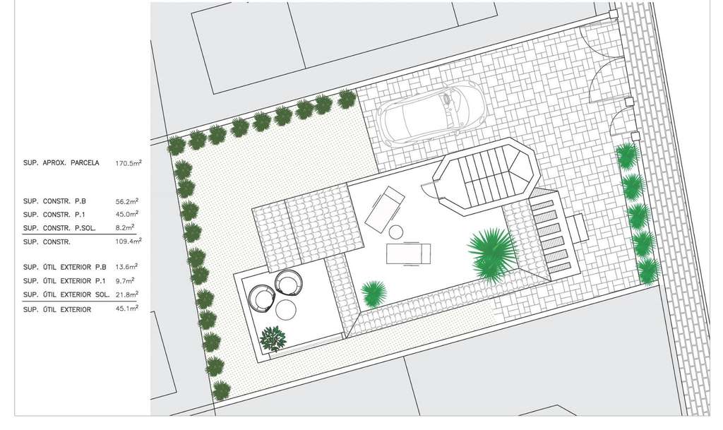 Cada propiedad tiene jardín privado y plaza de aparcamiento.