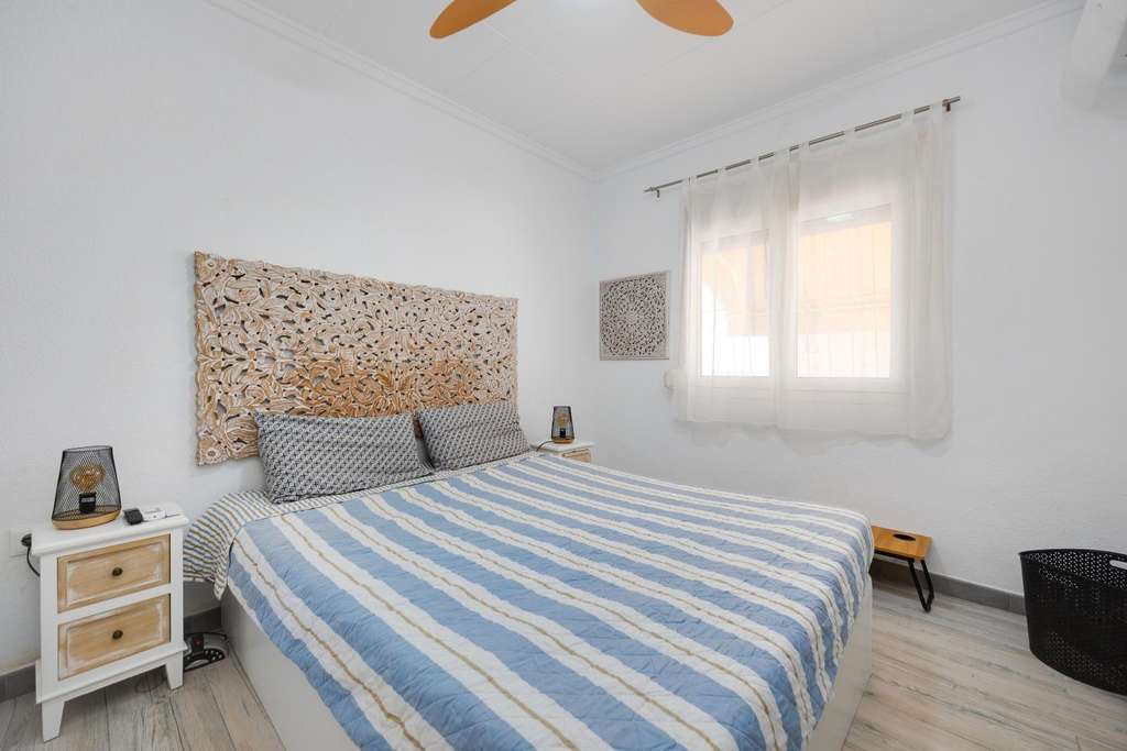 Bonita casa independiente con piscina privada situada en la tranquila y demandada urbanización La Marina. La vivienda cuenta con 51 m² construidos sobre una amplia parcela de 257 m², ofreciendo privacidad, comodidad y espacios exteriores ideales para disfrutar del clima mediterráneo. Se trata de un modelo Rosa ampliado, que dispone de 2 dormitorios y 1 baño, y que ha sido recientemente reformado, presentando un aspecto moderno, acogedor y listo para entrar a vivir. Uno de sus grandes atractivos es su sistema de energía solar, compuesto por 14 paneles solares con batería física de 7,5 kW, lo que proporciona un estilo de vida más eficiente, sostenible y con un importante ahorro energético. En el exterior encontramos una fantástica piscina privada, perfecta para disfrutar durante todo el año, además de una gran zona de almacenamiento bajo la terraza, muy práctica para guardar herramientas, bicicletas o mobiliario exterior. La propiedad está muy bien ubicada, cerca de todas las comodidades de la urbanización: centro médico, comercios, bares, restaurantes y supermercados, y a tan solo 4 km de las hermosas playas de la zona. Una excelente oportunidad tanto como vivienda habitual, casa de vacaciones o inversión en una de las zonas más populares de la Costa Blanca.
