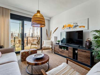 El apartamento está completamente amueblado y decorado en estilo moderno, con superficies claras y espacios abiertos. El salón y la cocina están integrados de forma fluida, y las grandes ventanas permiten una abundante entrada de luz natural. El suelo radiante en el salón, la cocina y los dos baños ofrece un confort adicional, especialmente durante los meses de invierno.