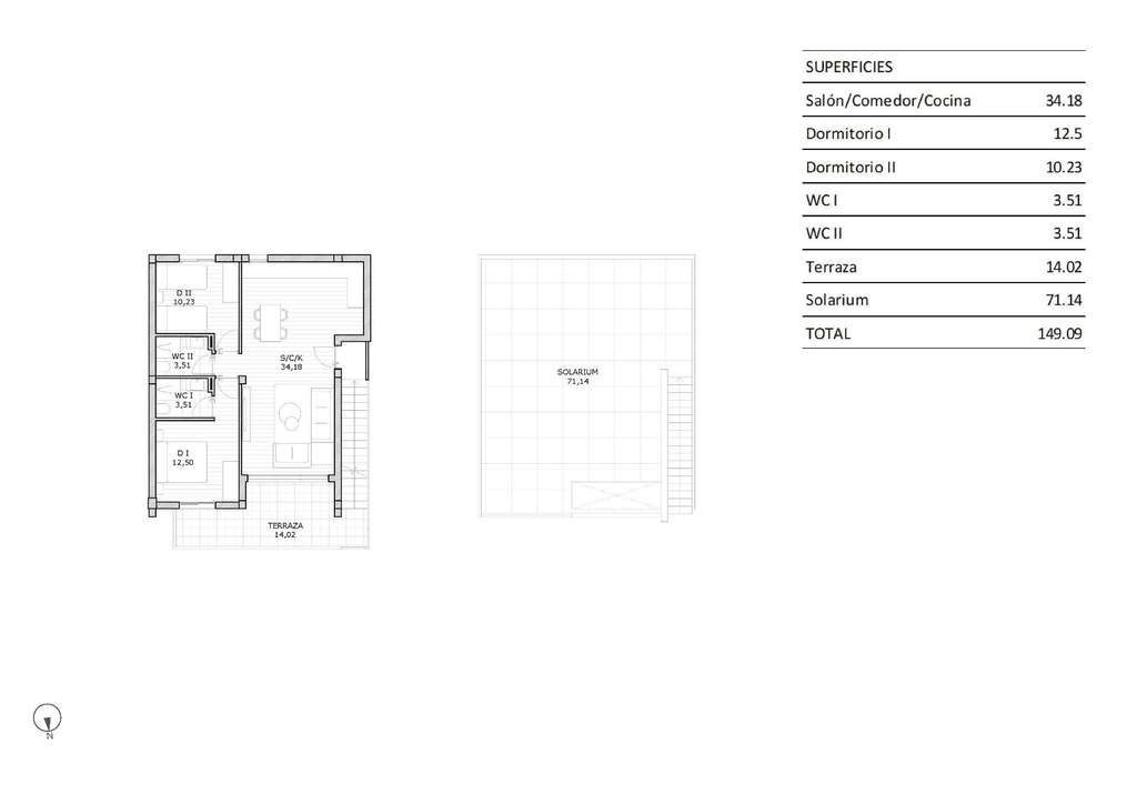 Residencial de bungalows de 2 y 3 dormitorios, en planta baja con jardín privado o planta alta con solarium privado.