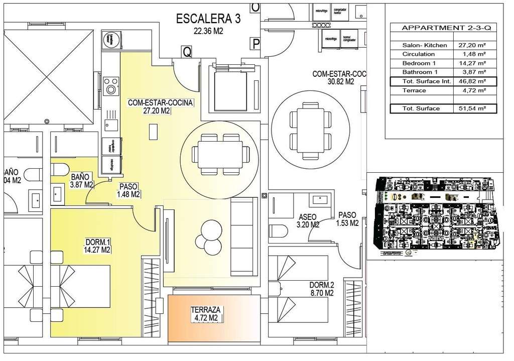 El proyecto consta de dos modernos edificios separados por una zona ajardinada comunitaria. Hay un total de 56 apartamentos contemporáneos disponibles con 1, 2 o 3 dormitorios, cada uno con terraza privada. Todas las viviendas han sido diseñadas pensando en la comodidad, la estética y la eficiencia energética, utilizando materiales de alta calidad y modernos sistemas de aislamiento.